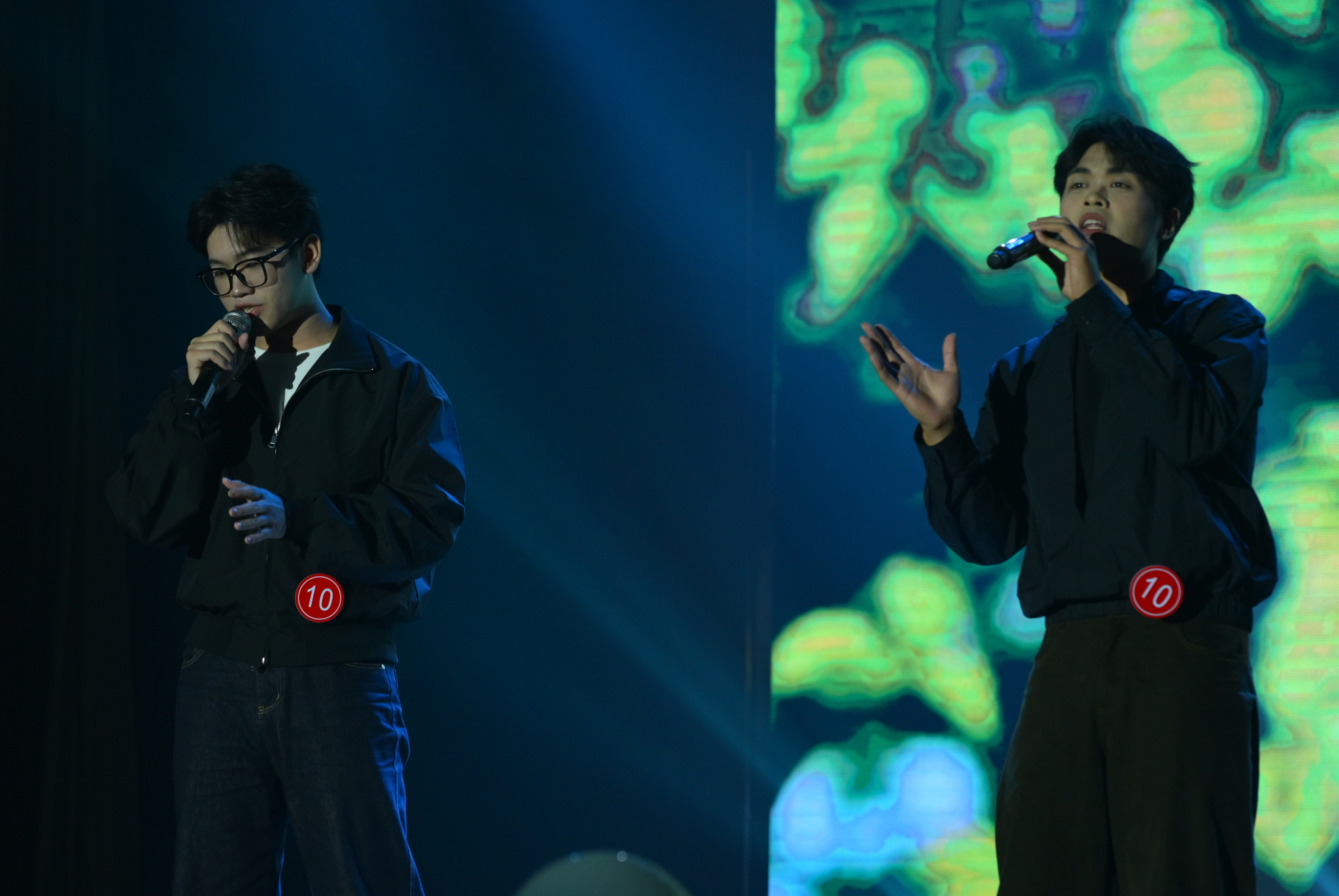 经过初赛和复赛的激烈角逐,12位选手脱颖而出会师决赛。决赛采用三轮赛制:第一轮个人赛由12位选手按照抽签序号依次演唱半首歌曲,得分排名前八的选手进入第二轮晋级赛;晋级的八位选手和帮唱嘉宾共同完成演唱,得分排名前四的选手晋级第三轮巅峰赛;晋级的4位选手依次演唱歌曲,决出冠亚季军。选手们用真挚的情感演绎每首作品,既有经典红歌的深情传承,也有时代新曲的青春诠释,现场掌声不断,气氛热烈。在经过三轮激烈的比拼后,第三张煎饼组合(2022级土木工程陈斌、2023级工程管理林健)、赵浩翔(2024级土木工程)、张紫怡(2023级工程管理)分别获得冠、亚、季军。分别获得冠、亚、季军。