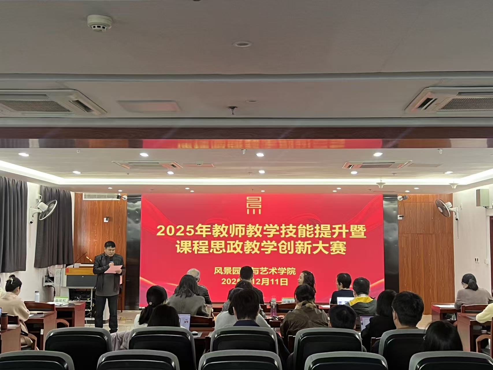 12月11日,风景园林与艺术学院在旗山校区仁德楼1204会议室举办2025年课程思政教学创新大赛。来自学院7个专业的16名教师同台竞技,其中包括高级职称教师5名,中级职称教师11名。大赛特邀经济与管理学院庄佩芬教授、材料工程学院刘学莘教授、农学院江敏教授担任评委,学院分管教学副院长陈顺和主持本次活动。