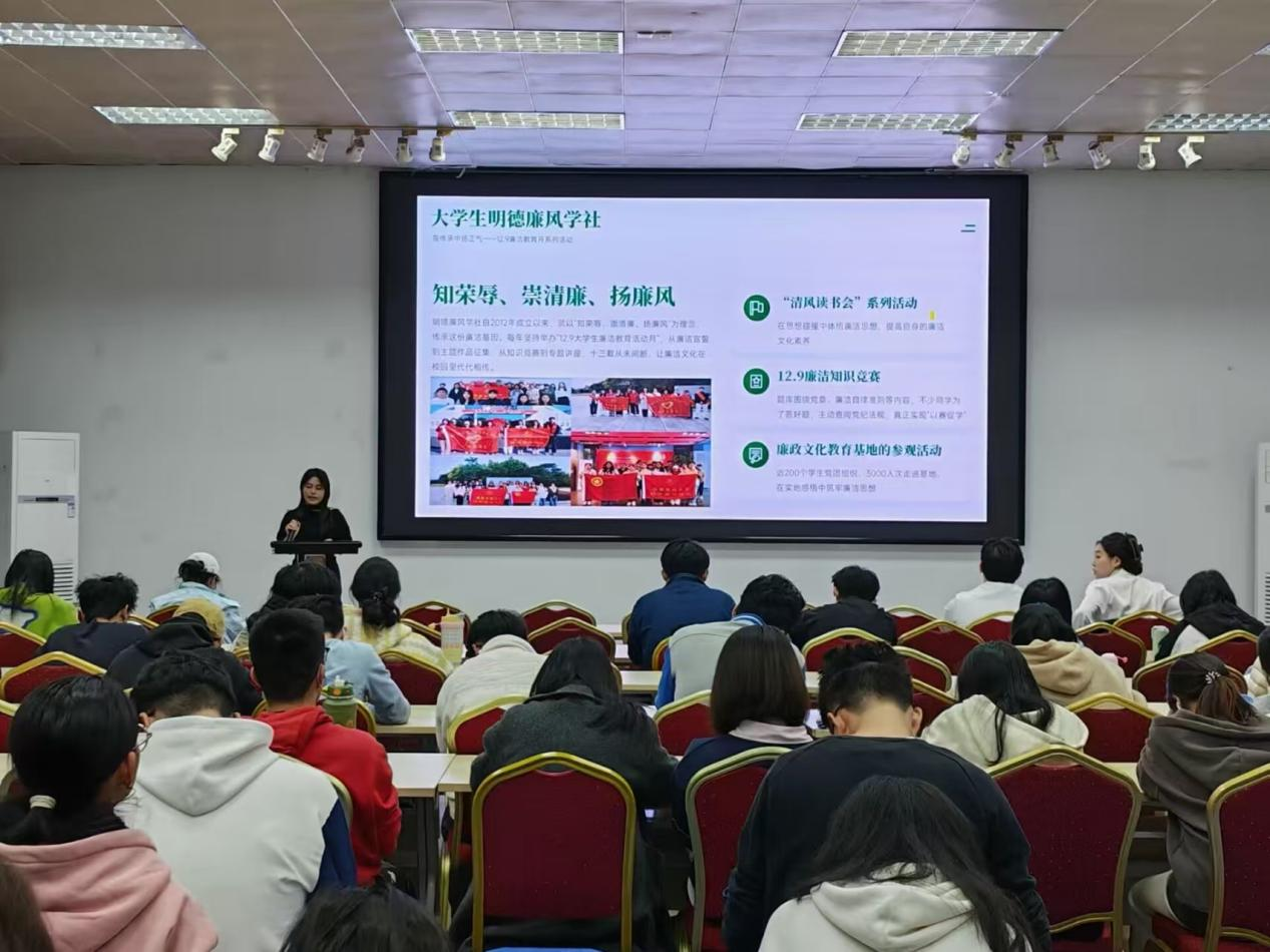 整场宣讲会主题鲜明、内容充实,既有理论层面的深刻阐释,又有校史故事的温情传递,更有青春视角的实践指引。参会同学全程专注聆听、认真学习,在互动交流环节中踊跃分享学习感悟,纷纷表示将以此次宣讲为契机,传承校史廉洁基因,把廉洁理念内化于心、外化于行,在学习生活中严守纪律底线,以实际行动践行青年廉洁担当。