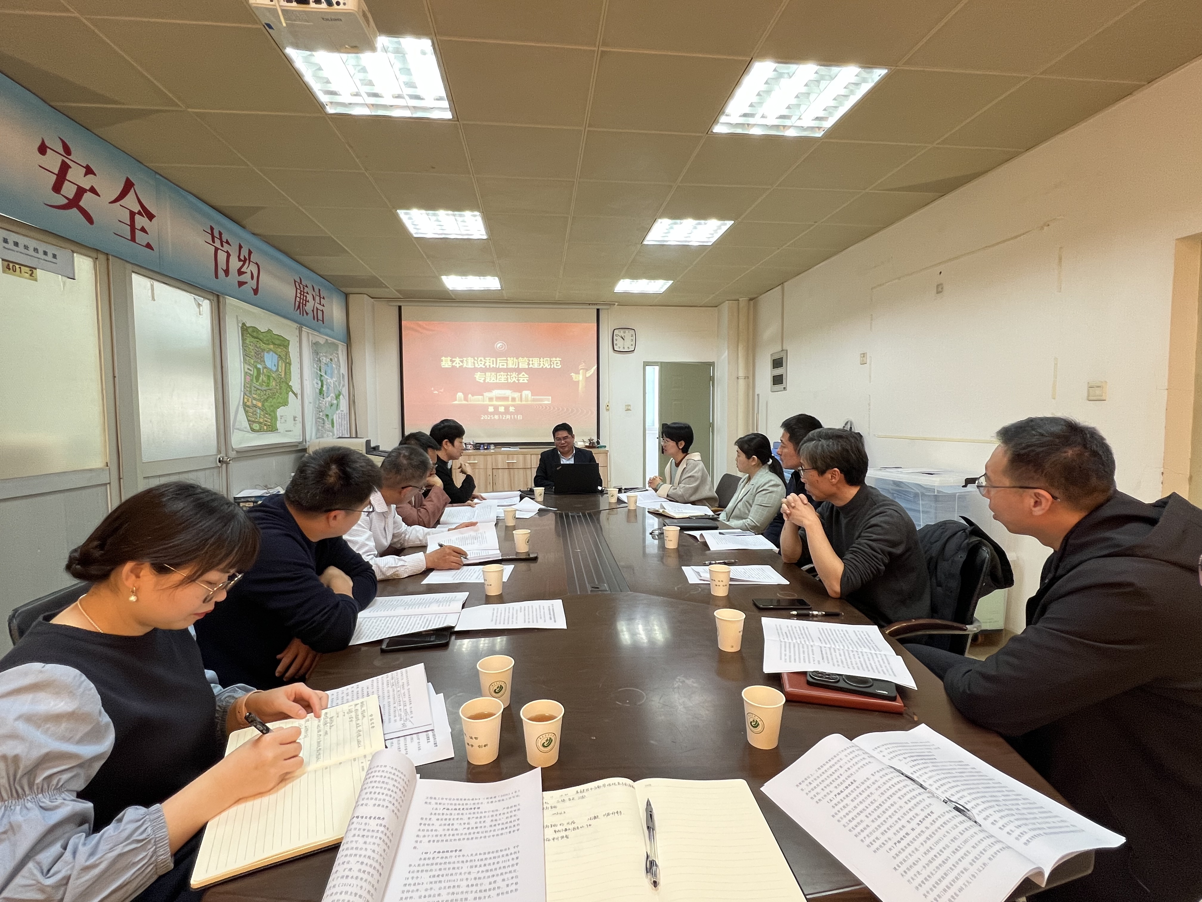 12月11日上午,基建处、后勤处联合有关部门召开基本建设和后勤管理规范专题座谈会。校纪委、审计处、计财处和国资处有关同志参加座谈会。
