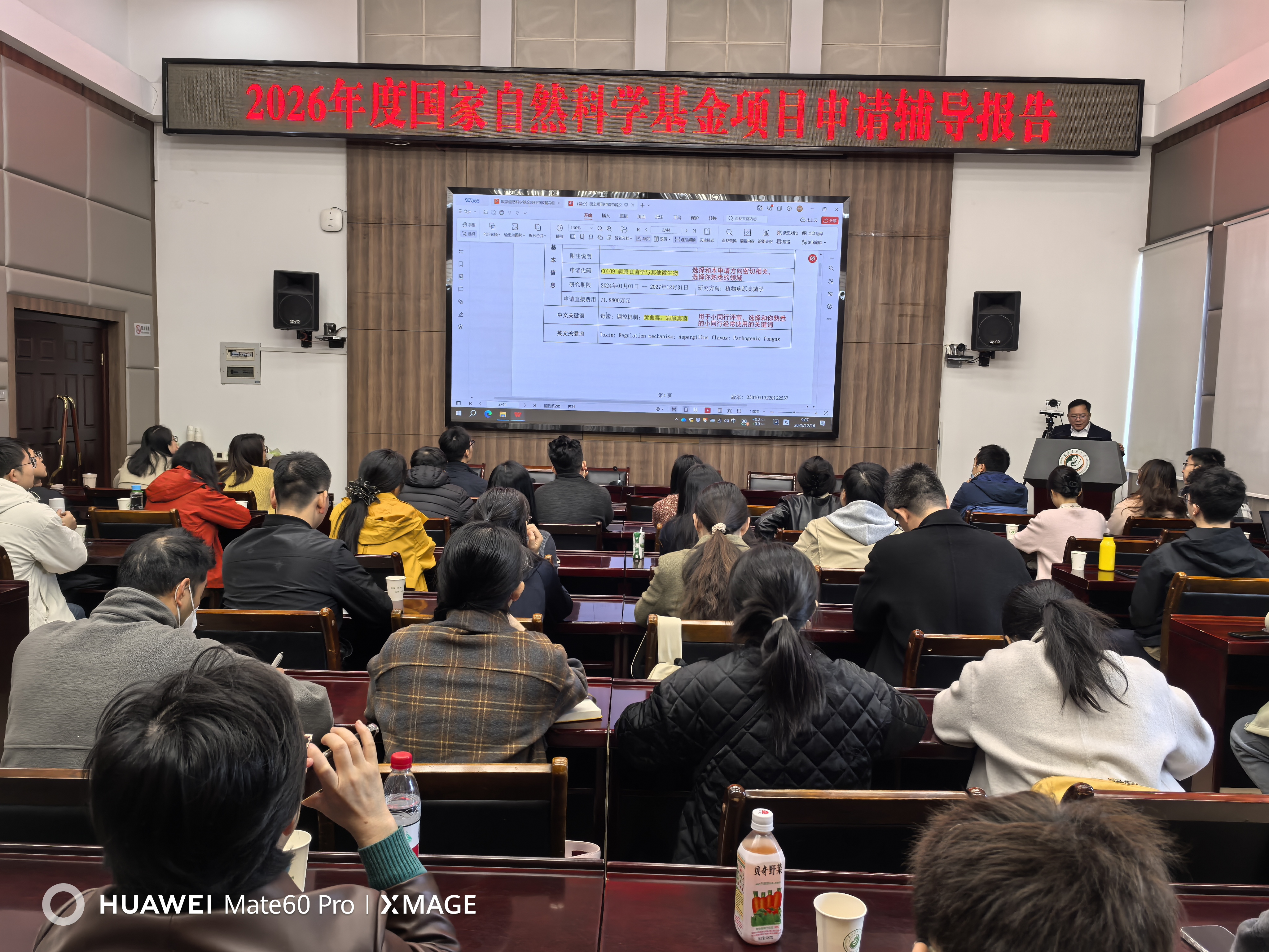 12月16日上午,科技处在福州仓山校区明德楼龙岩厅举办第三场次2026年度国家自然科学基金项目申请专家辅导报告会,特邀国家百千万人才工程人选、国家有突出贡献中青年专家汪世华教授作项目申请书撰写经验分享,科技处副处长张艳主持报告会。