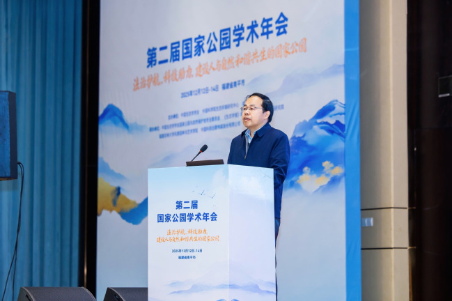 12月12日至14日,由我校和中国生态学学会、中国科学院生态环境研究中心联合主办的第二届国家公园学术年会在南平校区召开。国家林业和草原局国家公园研究院院长欧阳志云,中国生态学学会副理事长钟林生,南平市人民政府副市长魏敦盛,武夷山国家公园福建管理局党组书记、局长方燕鸿,校长兰思仁出席开幕式并致辞。第十四届全国人大常委吕忠梅、美国国家科学院院士Stephen Polasky、原自然资源部国土空间修复司司长周远波、校长兰思仁、汕头大学副校长刘文华、中国科学院古脊椎动物与古人类研究所研究员汪筱林、中国科学院生态环境研究中心研究员徐卫华作主旨报告。聊城大学校长白成林、国务院发展研究中心研究员苏杨等专家,以及来自全国25个省级行政区的专家学者、管理部门代表、高校师生及相关从业者等共500余人参会交流。