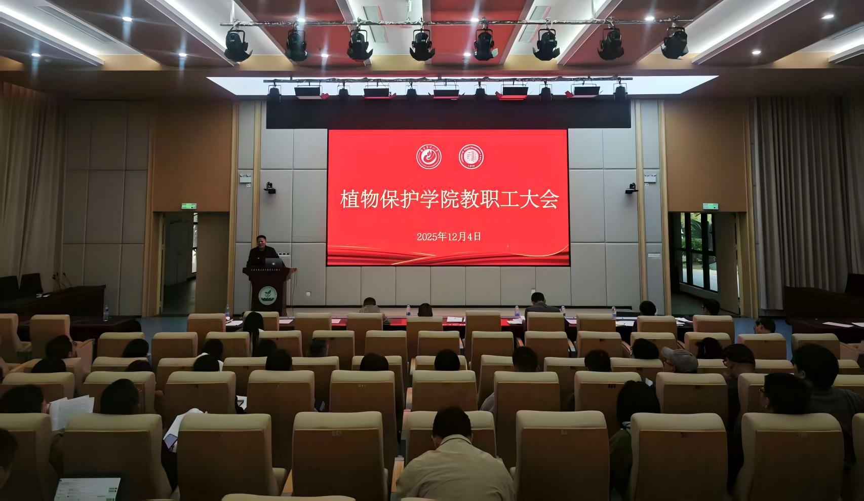 12月4日下午,植物保护学院教职工大会在全国重点实验室学术报告厅召开,围绕政治理论学习、政策制度解读、年度工作总结与未来工作部署等主要内容展开。大会由学院党委书记沈必胜主持,院班子成员和全体教职工参加。