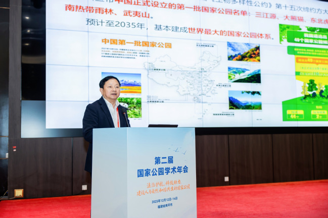 12月12日至14日,由我校和中国生态学学会、中国科学院生态环境研究中心联合主办的第二届国家公园学术年会在南平校区召开。国家林业和草原局国家公园研究院院长欧阳志云,中国生态学学会副理事长钟林生,南平市人民政府副市长魏敦盛,武夷山国家公园福建管理局党组书记、局长方燕鸿,校长兰思仁出席开幕式并致辞。第十四届全国人大常委吕忠梅、美国国家科学院院士Stephen Polasky、原自然资源部国土空间修复司司长周远波、校长兰思仁、汕头大学副校长刘文华、中国科学院古脊椎动物与古人类研究所研究员汪筱林、中国科学院生态环境研究中心研究员徐卫华作主旨报告。聊城大学校长白成林、国务院发展研究中心研究员苏杨等专家,以及来自全国25个省级行政区的专家学者、管理部门代表、高校师生及相关从业者等共500余人参会交流。