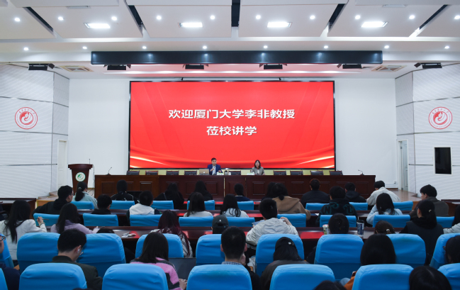 12月17日下午,厦门大学台湾研究院李非教授应我校邀请在禧强楼学术报告厅为师生作题为“当前台海局势与两岸政经解读——兼论两岸融合与中国统一”的专题报告,300余名师生到场聆听。