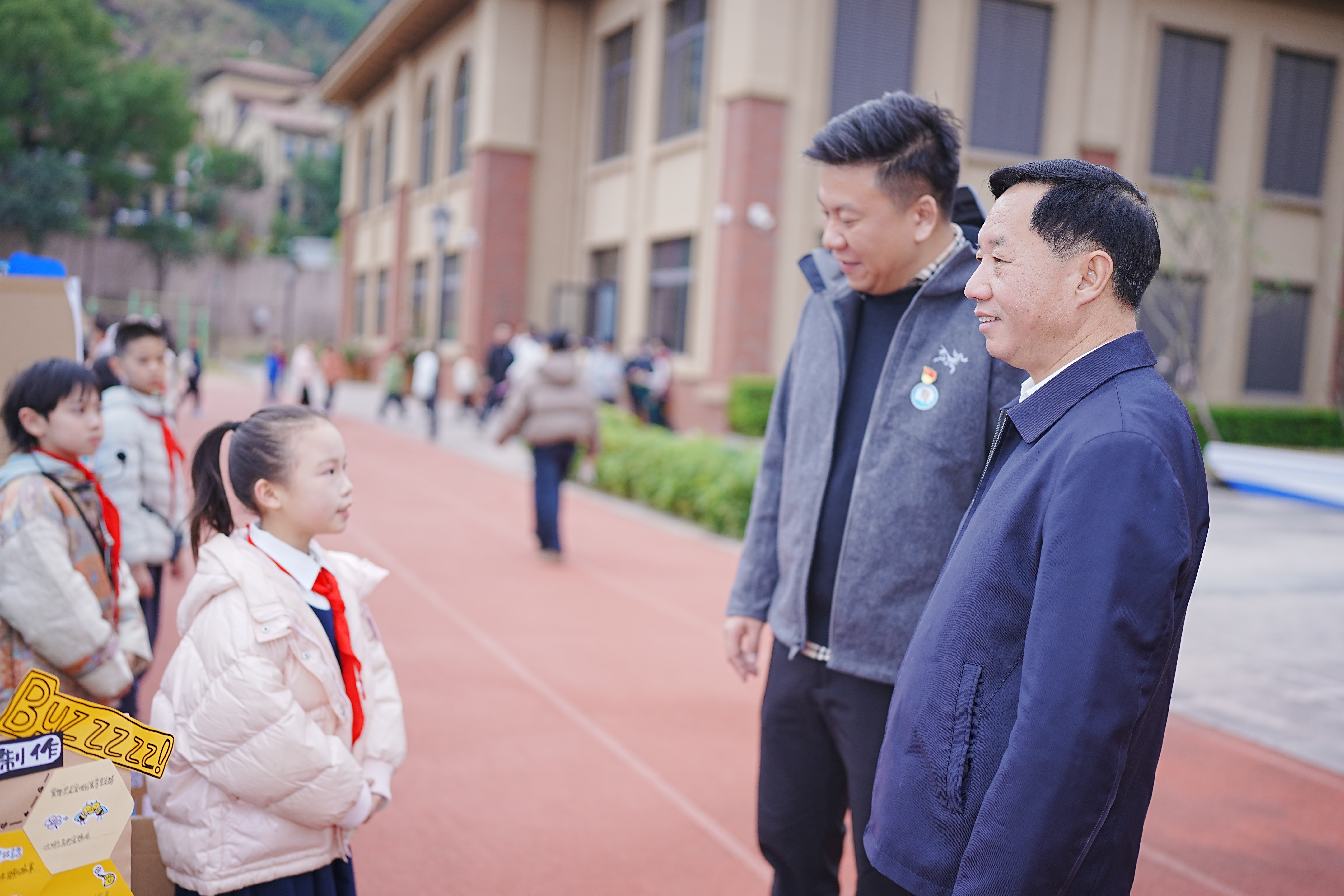 随着“启动”的口号响起,一场别开生面的科普嘉年华正式拉开帷幕。校党委副书记曾华平带领关工委、工会等一行莅临活动现场,亲切看望了附属小学师生。他强调,青少年科学素养的培育是筑牢国家创新根基的“源头工程”,高校与小学正是这一工程中紧密相连的“关键节点”。高校和小学联动绝非简单的资源共享,而是要以教育为纽带、以科研为支撑,打破高校与基础教育的壁垒,让实验室里的智慧成果走出象牙塔、走进校园课堂,化作滋养童心的“科学养分”。活动以创新实践诠释“高校共建”价值,让科研成果从实验室走向校园,让科学精神在互动中扎根。