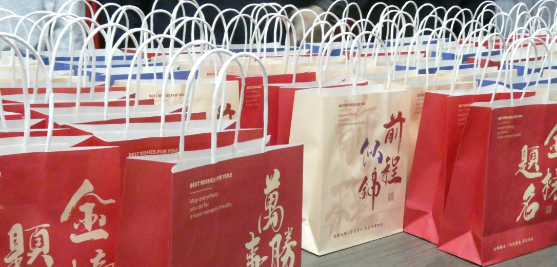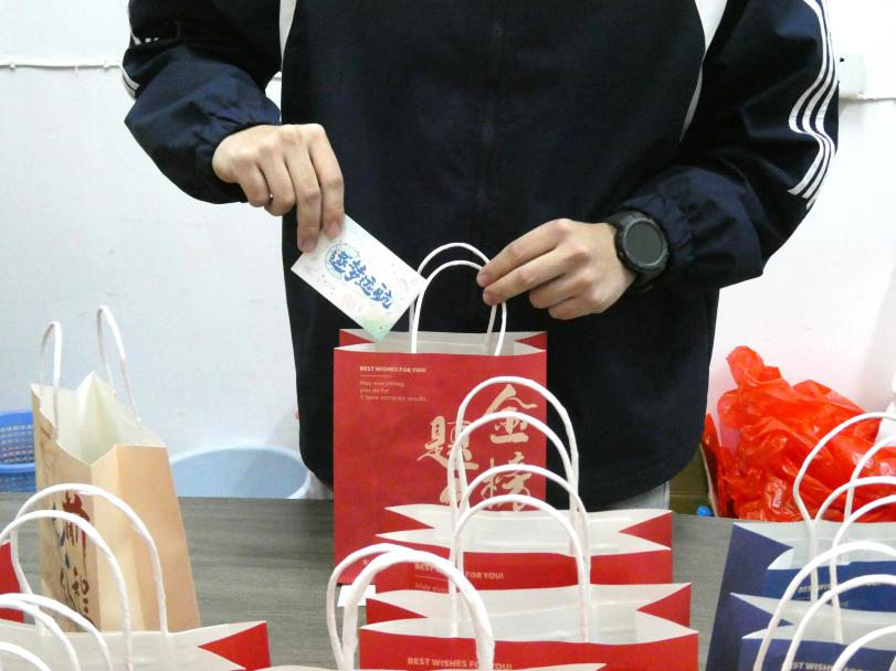 学院提前谋划、细致部署,从前期的活动策划、预算制定,到考研学子信息收集、物资采购,各环节均有序推进。今年的考研福袋在保留蒸汽眼罩、士力架、棒棒糖、熊猫钥匙扣等经典暖心好物的基础上,新增了“食”力加油卡、定制加油印章、暖心茶包等实用物品。每件礼物都承载着“蒸蒸”日上、金“棒”题名、一战成“硕”的美好祝愿。