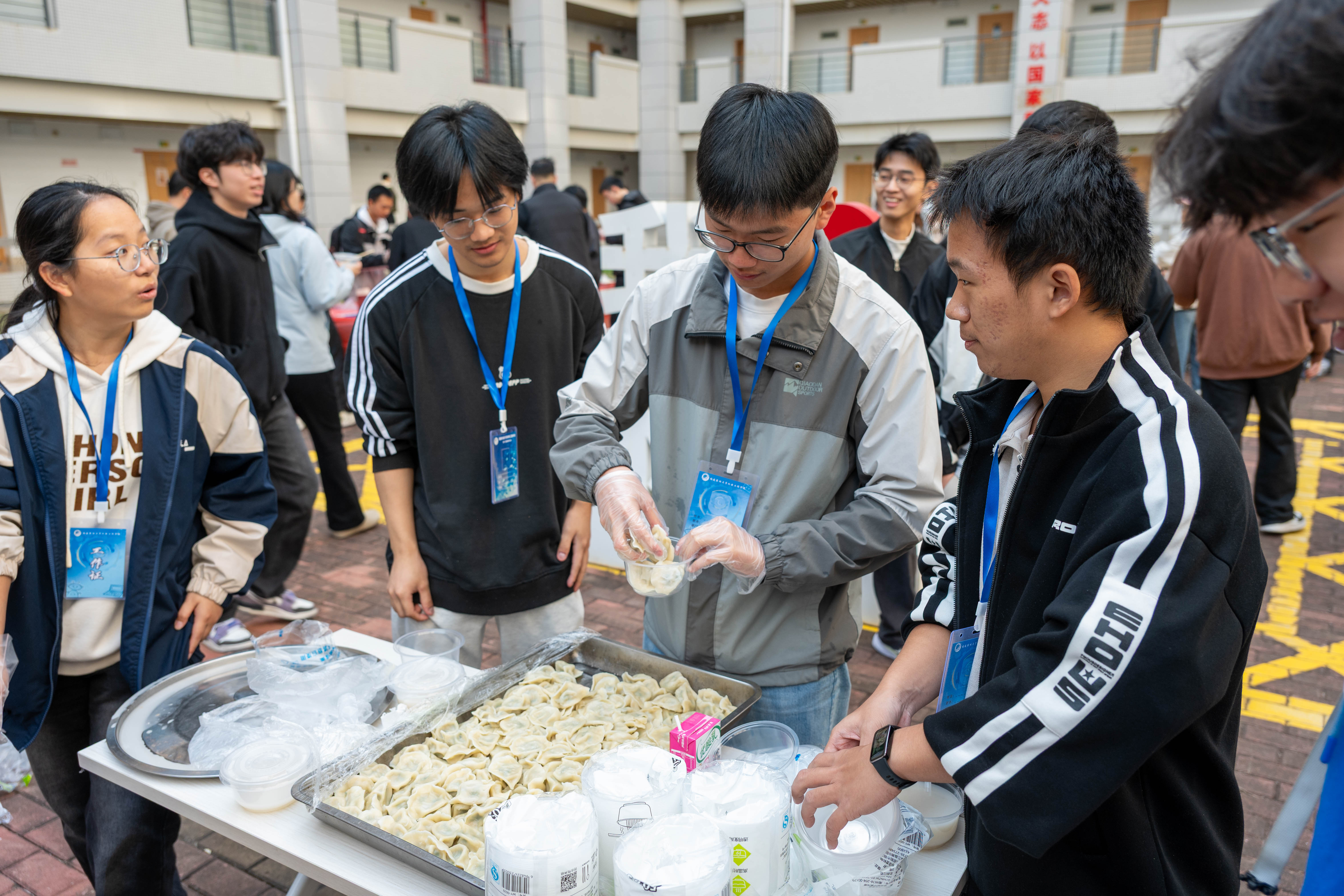 活动现场暖意融融、精彩纷呈,四大特色环节让师生们沉浸式感受冬至温情与文化魅力。在“巧手包‘铰’运”环节,现场精心准备了多种口味的馅料、饺子皮及工具,现场进行包饺教学,来自五湖四海的学子们各展身手,创意包制独具特色的饺子。煮好的饺子热气腾腾,师生们互相分享品尝,共享暖冬美食。