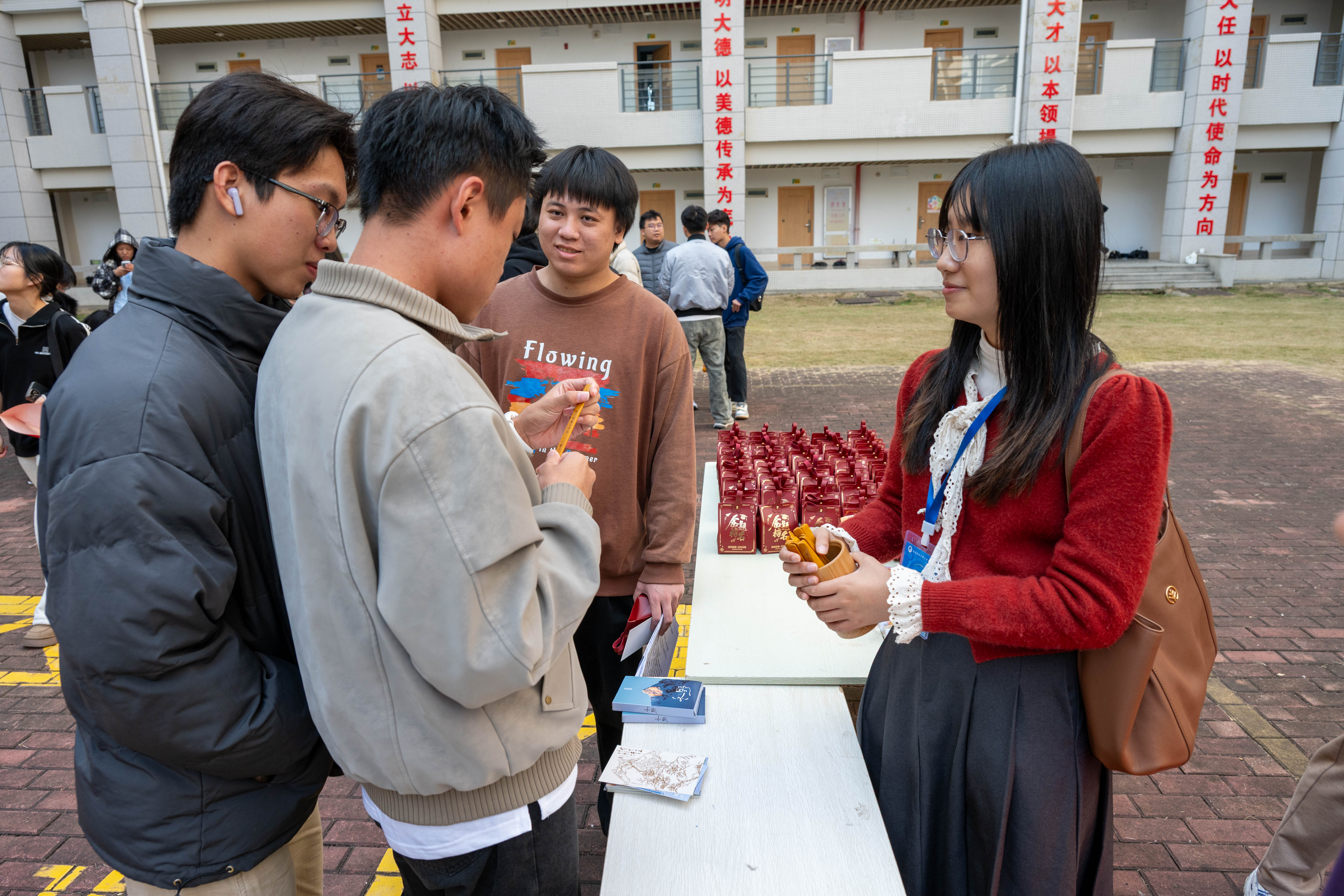 为契合“冬至阳生春又来”的美好寓意,助力考研学子冲刺备考,活动现场设置了专属签筒,内置精心撰写的励志古语与祝福诗词。即将步入考场的考研学子们参与摇签,亲手抽取属于自己的“上上签”,当场领取专属“好运礼品”,为即将到来的考试讨得好彩头,让这份温暖鼓励伴随备考全程。