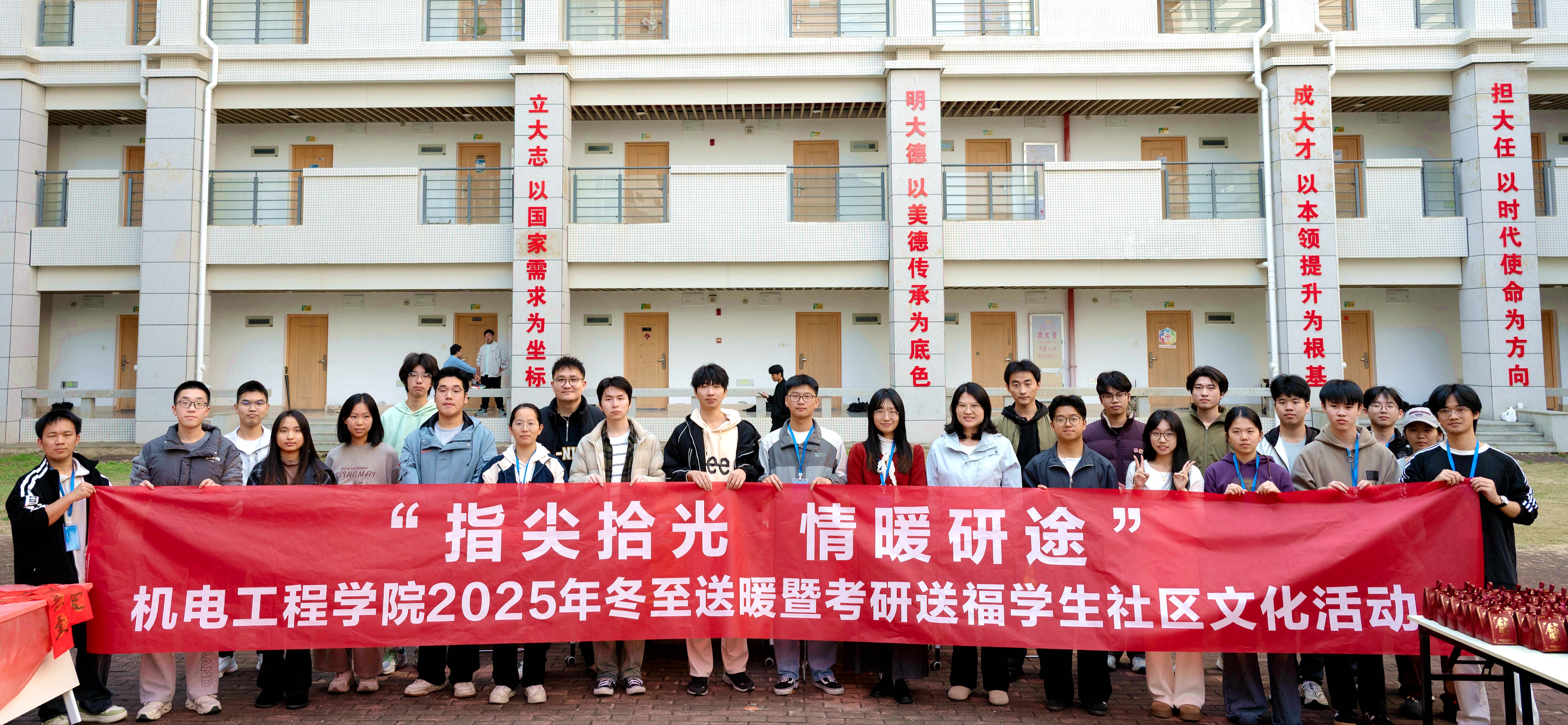 冬至临深巷,暖意满校园。当冬至的传统韵味邂逅考研的逐梦征程,为弘扬中华优秀传统文化,传递学院对全体师生尤其是考研学子的深切关怀,12月18日,机电工程学院“一站式”学生社区举办“指尖拾光,情暖研途”冬至送暖暨考研送福社区文化活动。