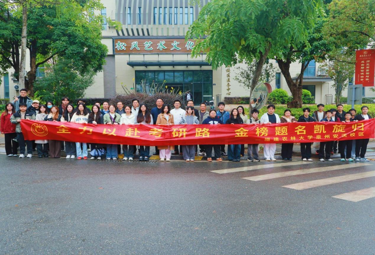12月19日,泉州安溪校区组织开展2025年考研送考活动。校区校园办主任黄成茂,副主任张云帆、洪涛到场为考研学子送上祝福和鼓励。