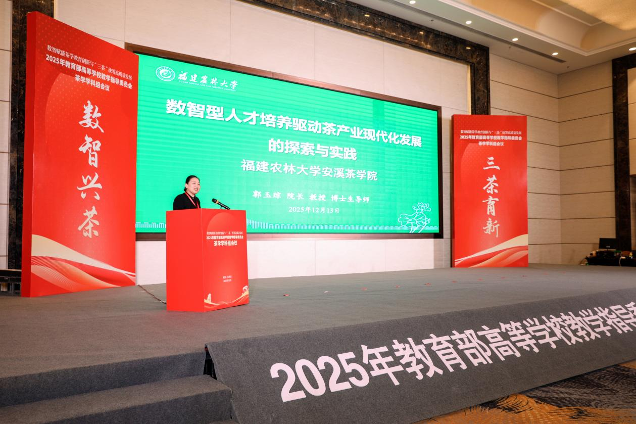 在院校交流环节,我校安溪茶学院(数字经济学院)院长郭玉琼教授应邀作了题为“数智型人才培养驱动茶产业现代化发展的探索与实践”的专题报告,分享了我校在茶学学科建设、跨学科课程体系构建、产教融合协同育人以及数智化人才培养方面的创新思路与实践成果,与武夷学院、安徽农业大学、湖南农业大学、西南林业大学、西北农林科技大学等十余所高校的代表进行了广泛交流。