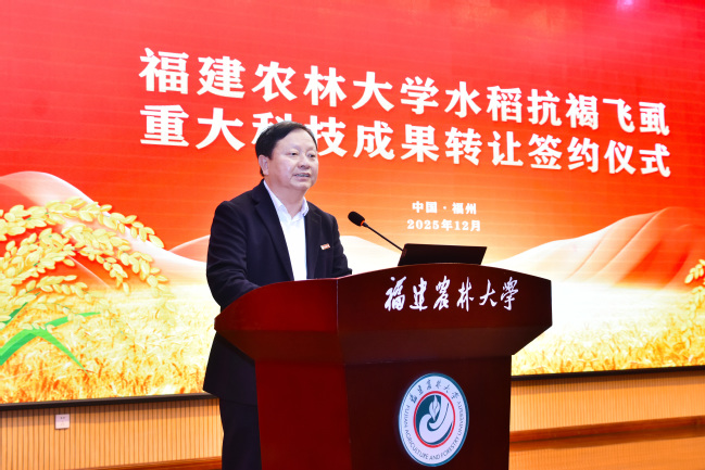 陈虔在致辞中表示,此次签约的抗褐飞虱成果,有效破解了水稻生产中的关键瓶颈,为保障粮食安全提供了有力的技术支撑。期待开云网页版与合作单位紧扣产业发展需求,加强跨学科协同攻关,力争产出更多“顶天立地”的成果,为福建乃至全国水稻产业提质增效和乡村全面振兴注入更强科技动能。省科技厅将一如既往支持开云网页版的建设与发展。