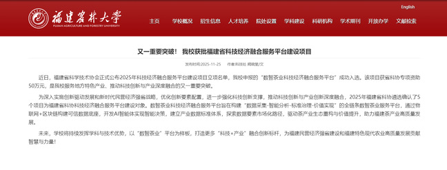 122、11月,福建省科学技术协会正式公布2025年科技经济融合服务平台建设项目立项名单,我校申报的“数智茶业科技经济融合服务平台”成功入选。该项目获省科协专项资助50万元,是我校服务地方特色产业、推动科技创新与产业深度融合的又一重要突破。