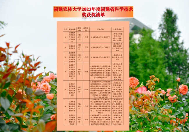 6、1月,省政府公布《福建省人民政府关于2023年度省科学技术奖励的决定》(闽政文〔2025〕28号),我校有20项成果喜获省科学技术奖奖励(含合作7项,其中自然科学奖5项、科学技术进步奖15项),其中一等奖6项,二等奖4项(含合作2项),三等奖10项(含合作5项)。我校作为第一完成单位获自然科学奖一等奖数量居全省首位,获省科技奖一等奖总量、自然科学奖一等奖和自然科学奖总获奖数均创我校历史新高,标志着我校在基础研究和应用研究成果产出方面处于省内领先水平。