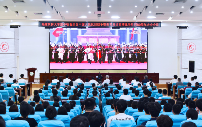 96、9月3日,纪念中国人民抗日战争暨世界反法西斯战争胜利80周年大会在北京天安门广场隆重举行。中共中央总书记、国家主席、中央军委主席习近平发表重要讲话并检阅部队。我校万名师生通过多种形式收看纪念大会,共同铭记历史、缅怀先烈、珍爱和平、开创未来。