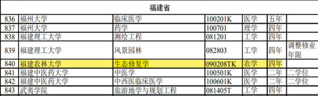 42、4月,教育部发布2024年度普通高等学校本科专业备案和审批结果,并发布2025年普通高等学校本科专业目录,我校获批生态修复学本科专业,计划从2025年秋季开始正式招生。