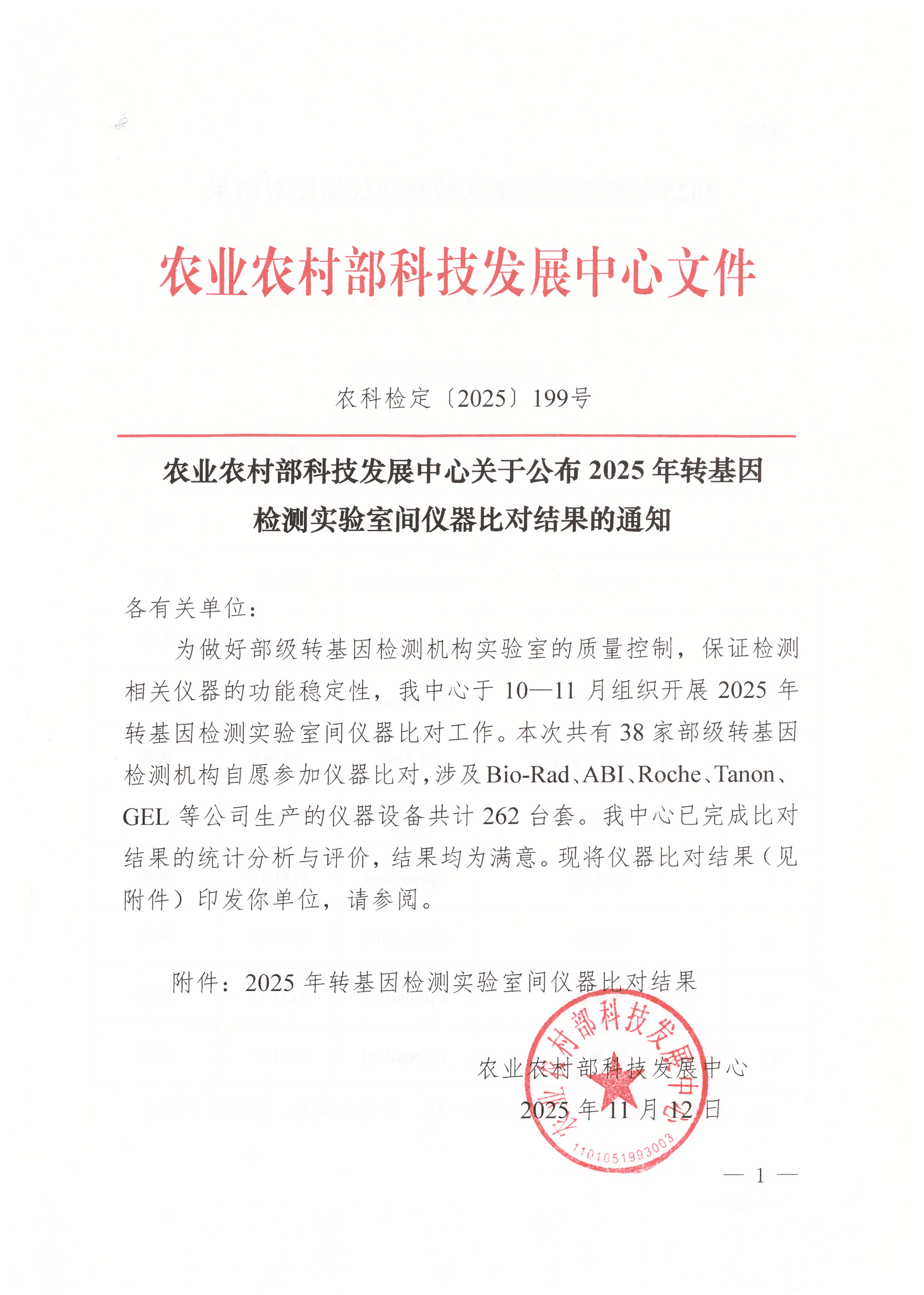 转基因检测实验室间仪器比对结果的通知