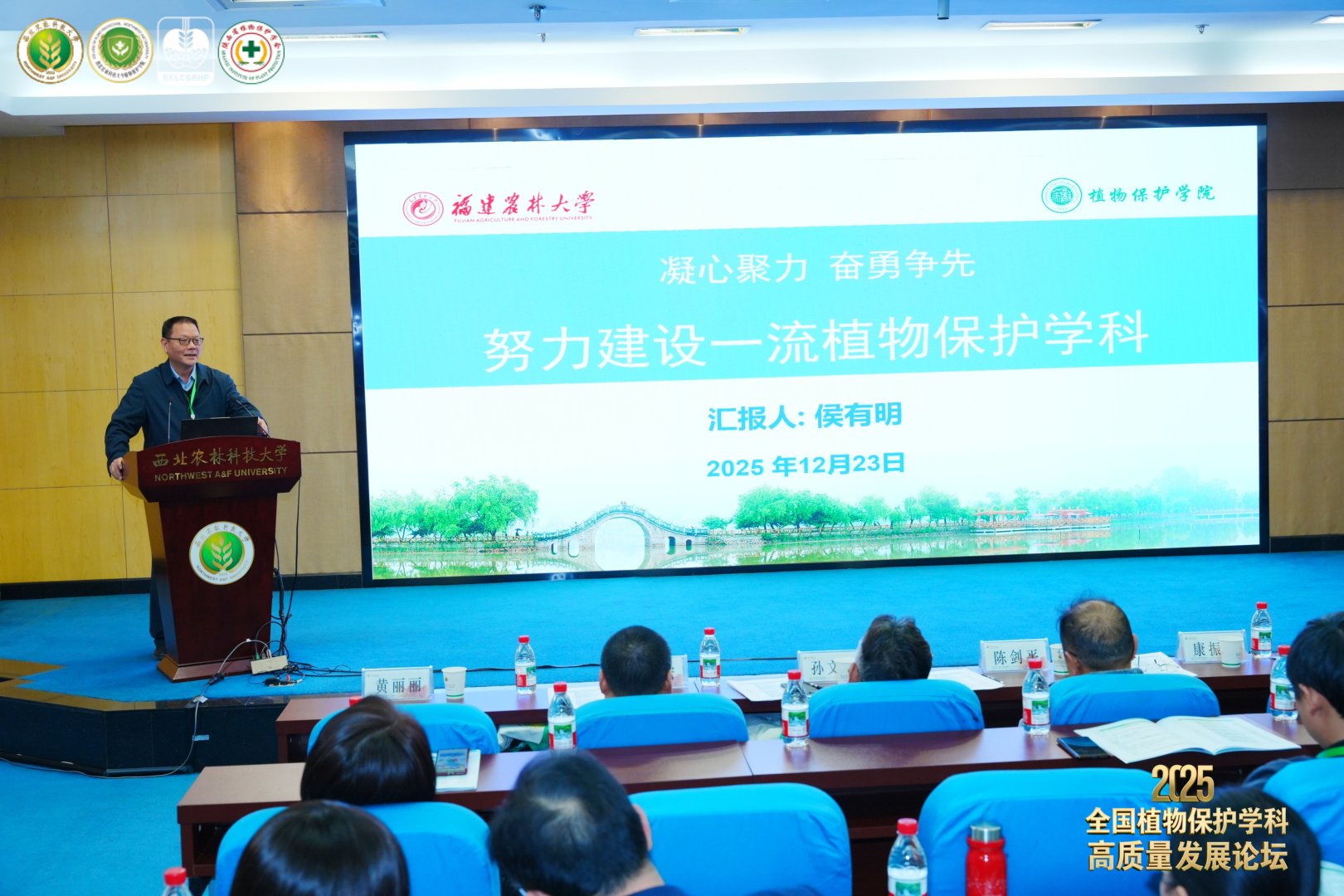 12月22日至23日,以“新质植保与学科高质量发展”为主题的2025年全国植物保护学科高质量发展论坛在西北农林科技大学举行。植物保护学院院长侯有明教授应邀出席,并以“凝心聚力,奋勇争先,努力建设一流植物保护学科”为题作报告。学院副院长陈倩教授、夏晓峰教授,院长助理潘晓鸿教授、彭露教授一同参加会议。