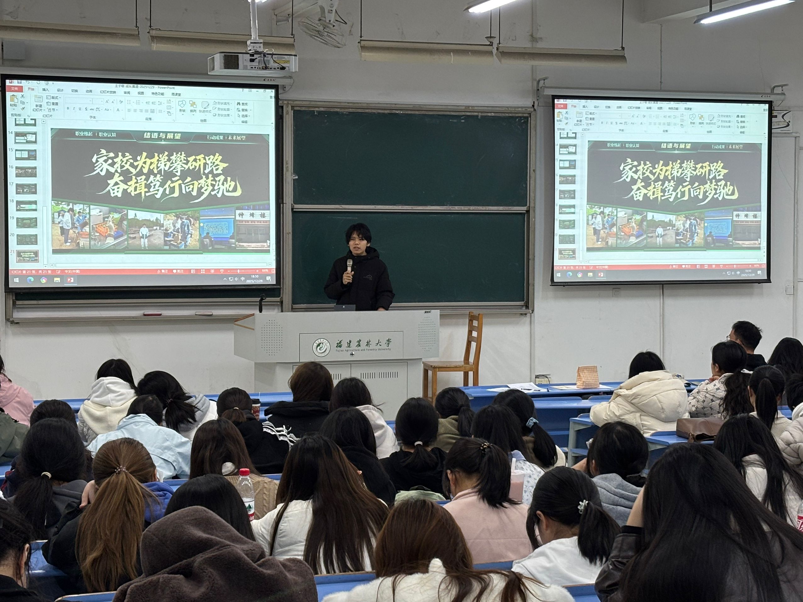 12月29日,园艺学院“青马工程”大学生骨干培训班第二讲在禧强楼106教室举行。本期培训以“青春筑梦基层,规划引领未来”为主题,特邀校职业规划大赛优秀选手现场分享成长故事与职业蓝图,吸引130余名学生骨干参加。