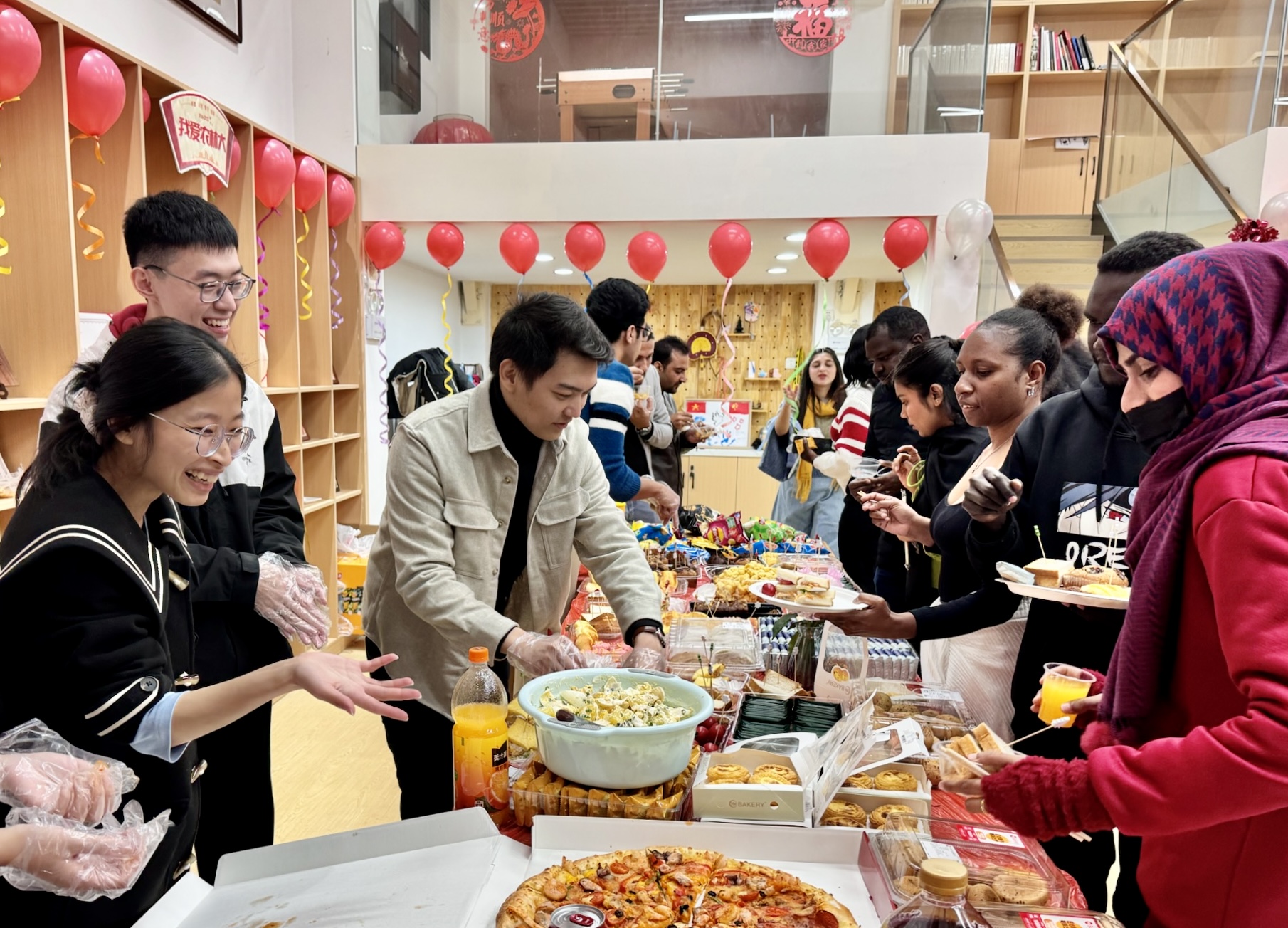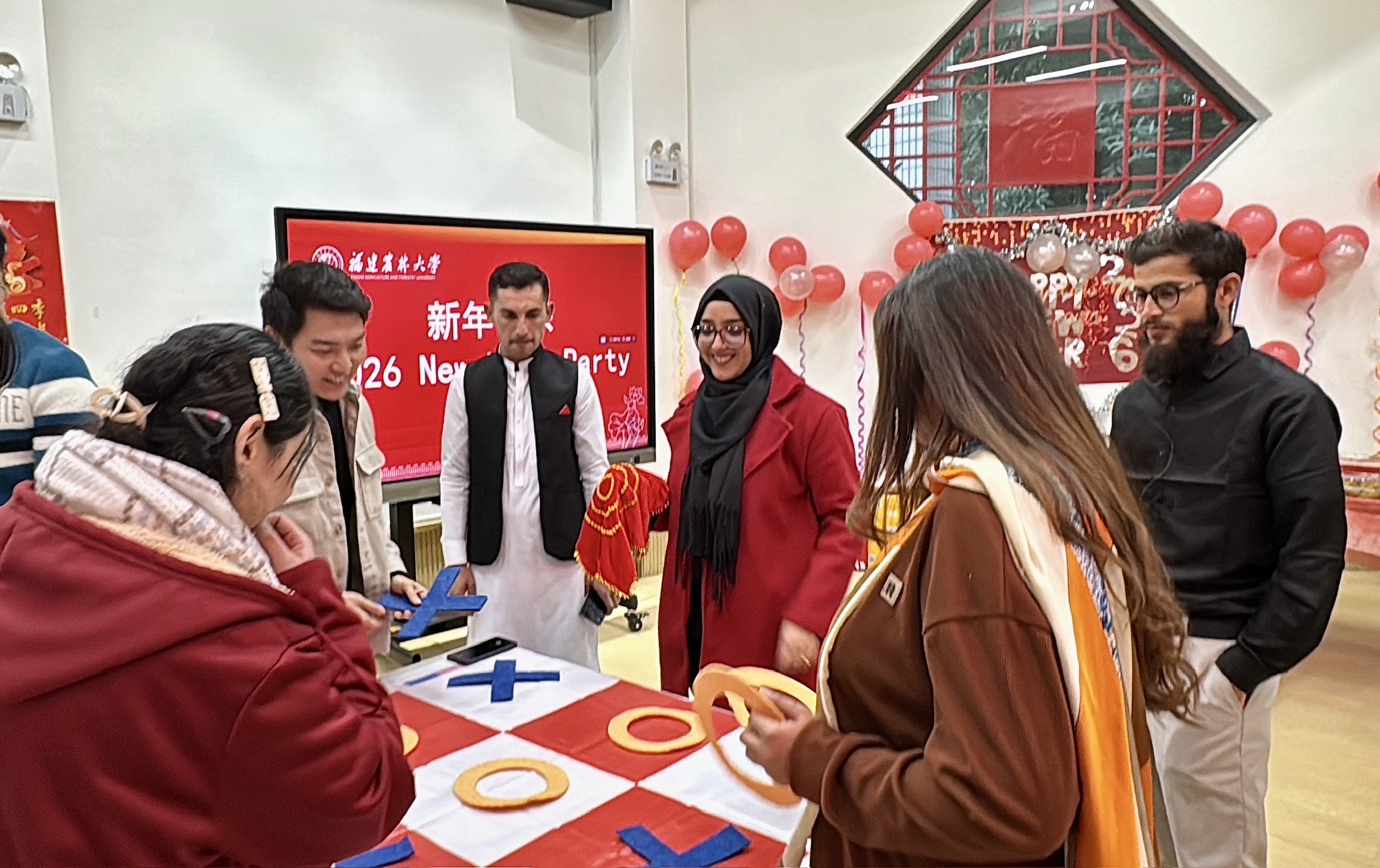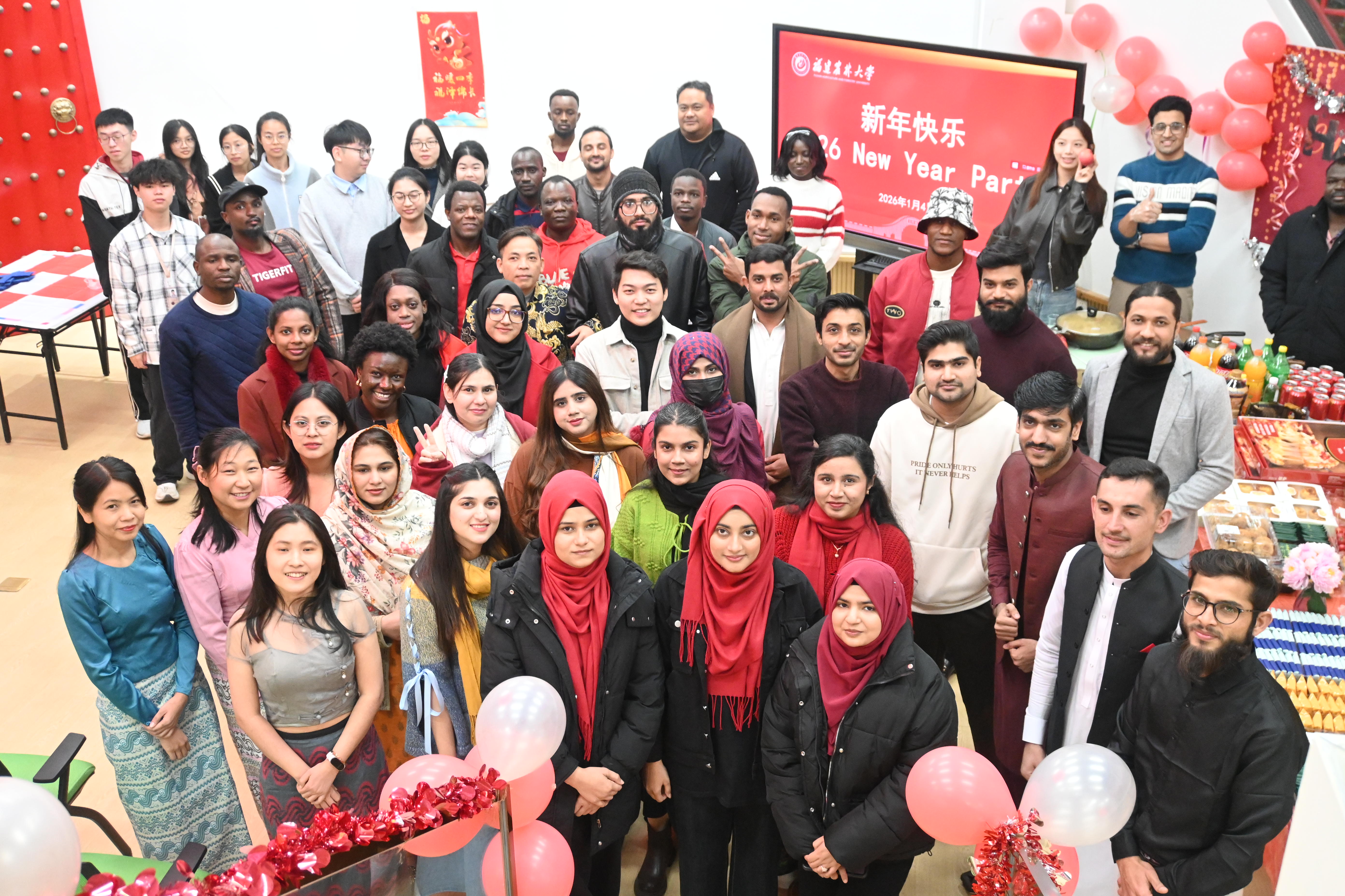 1月4日,戴尔豪西大学联合学院(国际学院)在“一带一路”留学生“福文化”研习社举办中外师生新年联欢活动,张灯结彩、喜气洋洋,一场充满跨文化风情的中外师生新年联欢活动温馨上演。学院教师代表,以及来自越南、巴基斯坦、缅甸、尼日利亚等多个国家的留学生和中国学生代表齐聚一堂,以特色美食分享、歌舞表演的形式共庆新年。