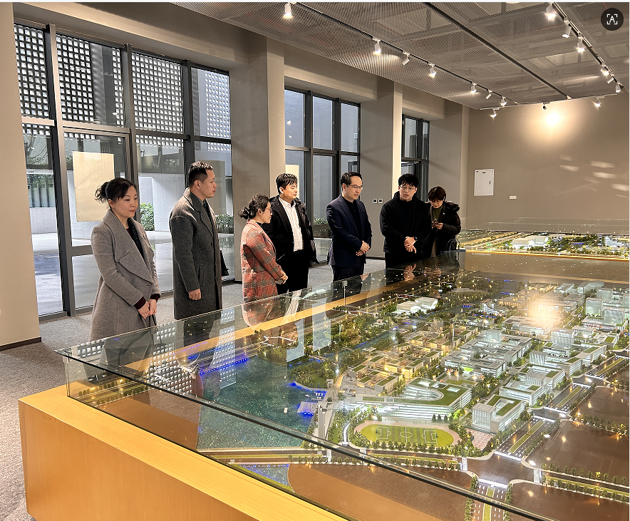 座谈结束后学院领导一行实地参观了校园,察看了校园规划沙盘,直观了解校区整体布局与发展规划;走进智慧教室,感受现代化教学设施与沉浸式教学环境;探访学生宿舍与食堂,调研“一站式”学生社区建设与后勤服务保障情况,了解学院在育人环境营造、学生全面发展支持等方面的举措。