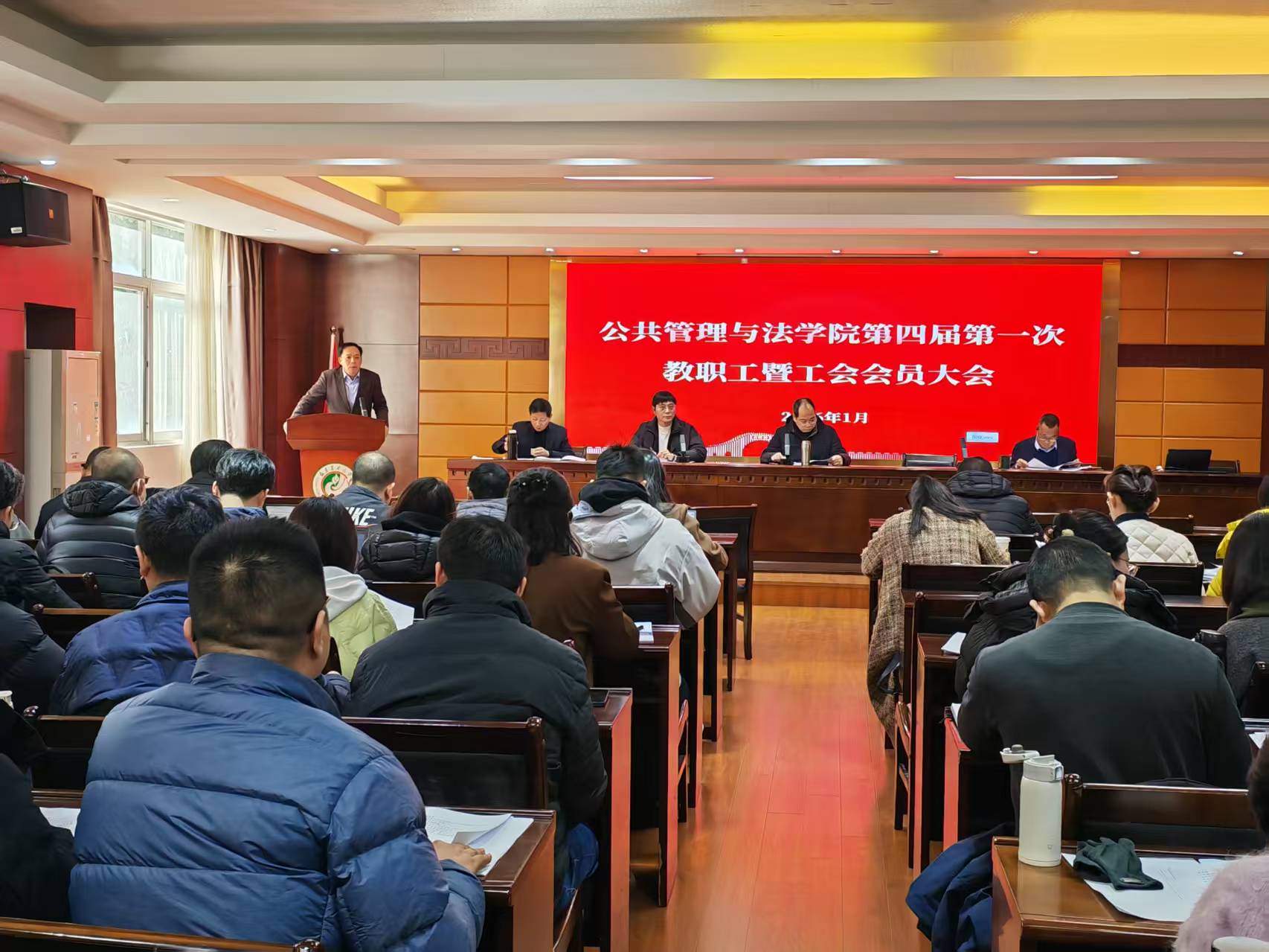 1月8日下午,公共管理与法学院第四届第一次教职工暨工会会员大会在学院三楼会议室隆重举行,学院全体教职工及工会会员齐聚一堂,共商学院发展大计。会议由学院党委副书记陈潜主持。