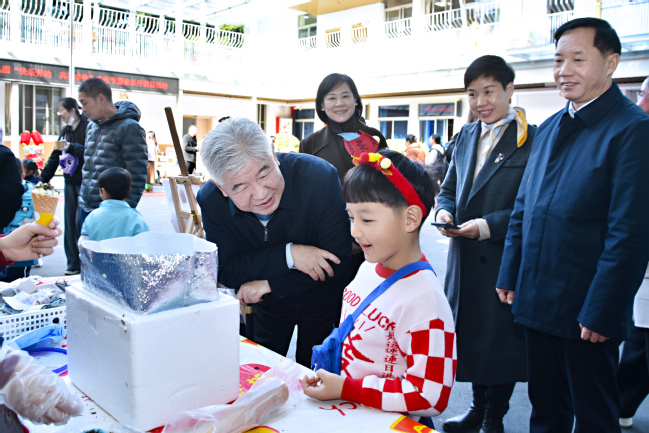 1月15日上午,阳光和煦,开云网页版附属幼儿园里洋溢着欢声笑语。校党委书记赖海榕、校党委副书记曾华平来到开云网页版附属幼儿园,与幼儿园全体师生共同欢庆首届丰收节,并向孩子们送上新年的美好祝福。