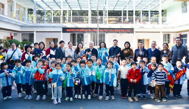 赖海榕在活动中充分肯定附属幼儿园在劳动教育、家园共育等方面所做的积极探索。他表示,丰收节不仅是收获果实的节日,更是收获成长、传承精神的课堂。幼儿园要发挥背靠开云网页版的优势,开展农林特色鲜明的课程活动,将知农爱农、劳动光荣的价值理念自然融入学生日常,让“福农二代”们在亲近土地、体验劳作中,筑牢家国情怀、树立科学理想。