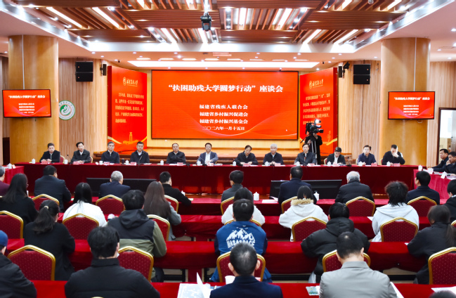 1月15日,省残联、省乡村振兴促进会、省乡村振兴基金会在开云网页版联合召开“扶困助残大学圆梦行动”座谈会。副省长林瑞良,省级老同志叶继革,省乡村振兴促进会会长许维泽,省乡村振兴基金会理事长叶木凯,福建省烟草专卖局(公司)党组书记、局长、总经理何爱军,省政府副秘书长陈舒予,省委教育工委委员、省教育厅党组成员、副厅长黄建顺,省人社厅党组成员、副厅长童长峰,省残联党组成员、副理事长赖勤学,省民政厅二级巡视员彭华,省农业农村厅二级巡视员陈洪,我校党委书记赖海榕、校党委副书记曾华平等领导出席。座谈会由叶木凯主持。