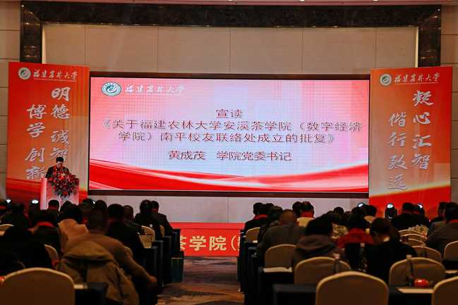 1月17日,安溪茶学院(数字经济学院)南平校友联络处成立大会在世界文化与自然双遗产地武夷山举行。本次大会以“绿水青山孕茶香,南平校友谱新章”为主题,旨在凝聚在南平地区工作生活的校友力量,服务区域茶产业与数字经济发展。副校长林庆藩、校友总会副会长雷国铨,学院党委书记黄成茂、院长郭玉琼等校院领导,武夷学院茶与食品学院院长叶江华、武夷山市武夷街道党工委书记陈烈等地方嘉宾,与160余位校友欢聚一堂,同叙情谊,共谋发展。学校部分地方及学院校友代表到场祝贺。