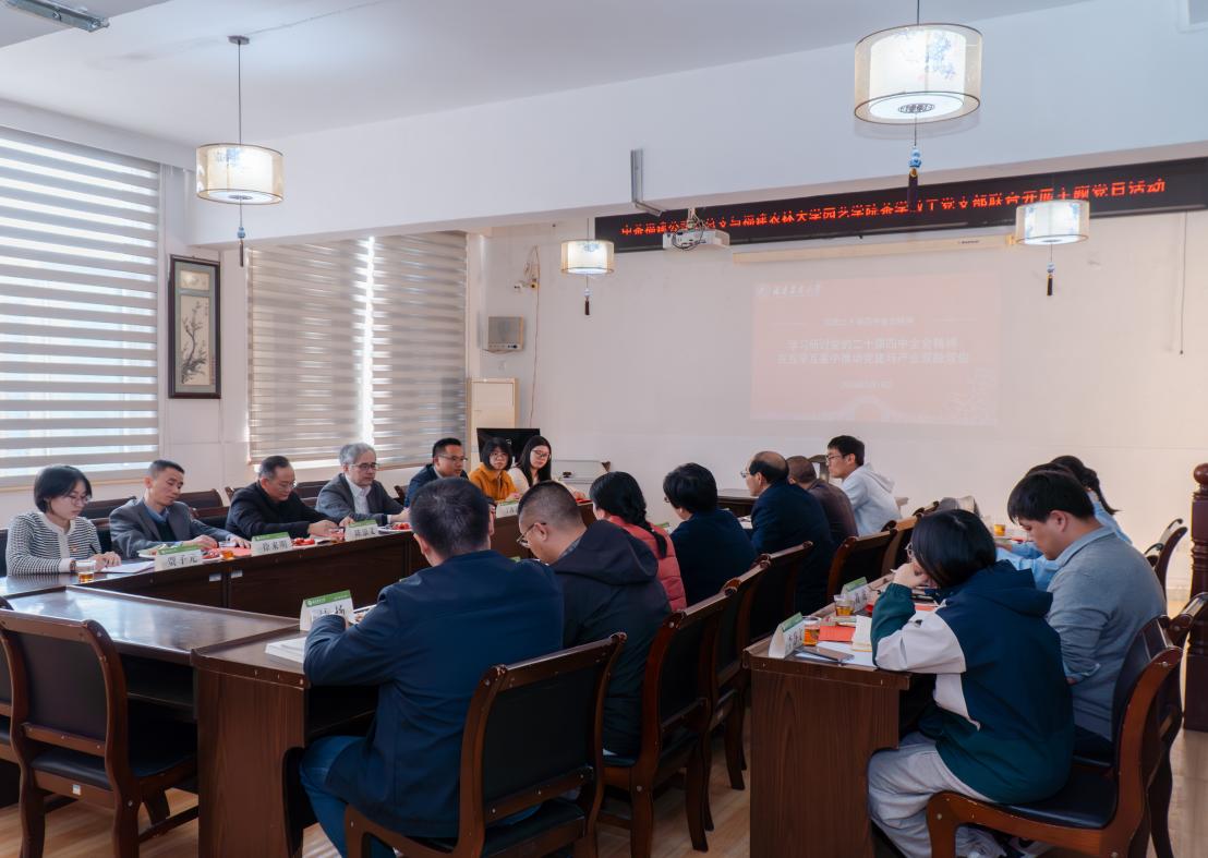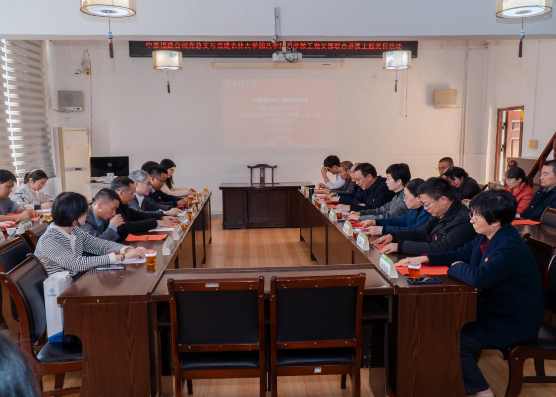 活动伊始,学院党委书记孙思惟回顾了学院90年的办学历史,强调要统筹做好“茶文化、茶产业、茶科技”这篇大文章,为乡村振兴与产业升级注入强大红色动能。中茶福建公司党总支书记王东铭强调,面对发展新质生产力的时代要求,校企双方应进一步加快融合,共同提升创新能力,助力茶产业转型升级。随后,双方党支部分别介绍了各自党组织的基本情况与特色做法。茶学教工党支部书记郝志龙教授介绍了支部党建引领业务发展情况,茶学学科主任林金科教授对学科特色和未来可能与中茶福建公司合作的方向提出了建议。与会党员围绕党的二十届四中全会提出的重大决策部署,结合茶业新质生产力、茶叶生产技术、产品研发、专业人才培育及服务乡村振兴等具体领域,开展了深入研讨。大家一致认为,必须坚持和加强党的全面领导,将学习全会精神的成果转化为推动产业高质量发展的强大动力与务实举措。