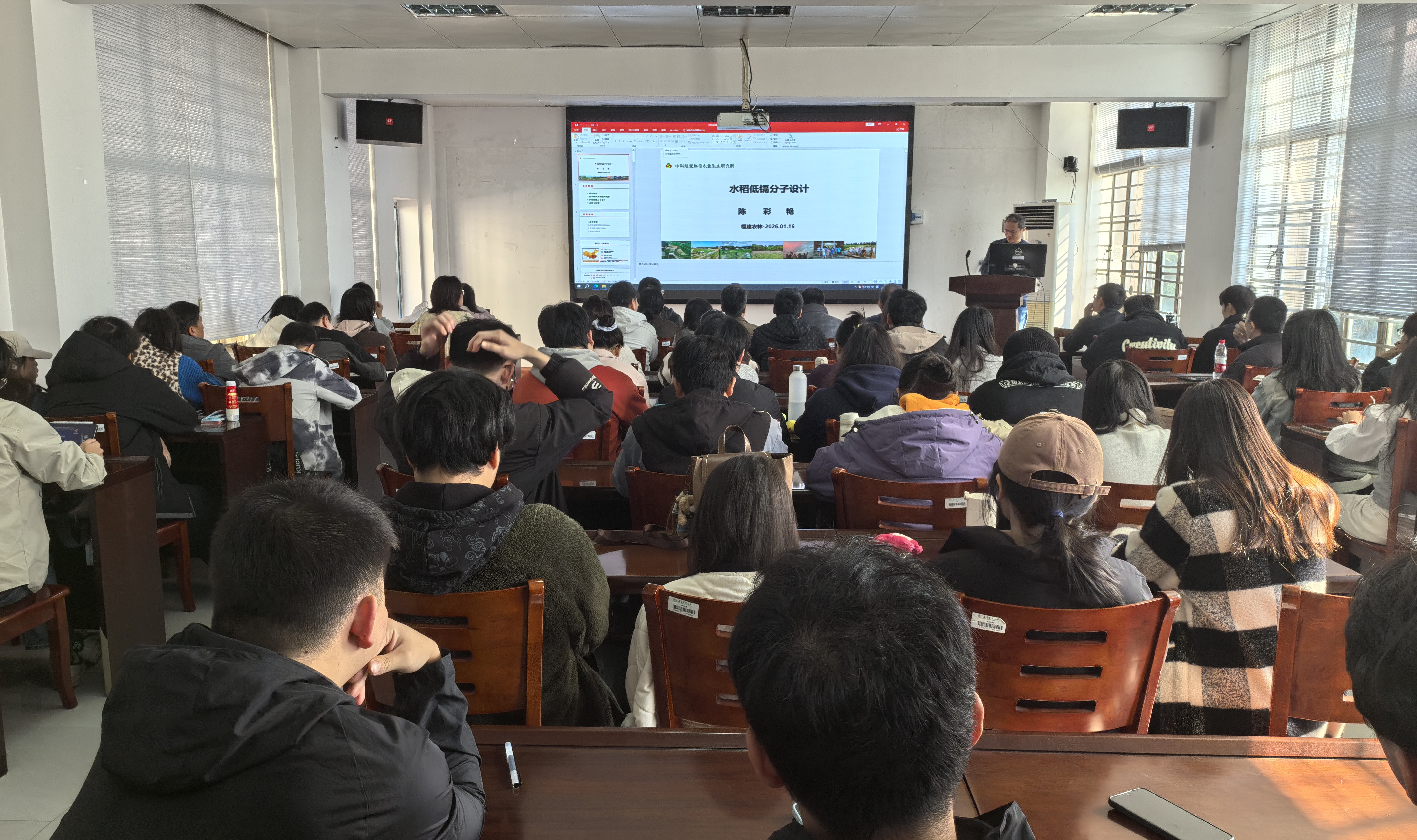 1月16日上午,农学院第三十四期“金谷论坛”在农学院302教室举行。本期论坛邀请到中国科学院亚热带农业生态研究所博士生导师陈彩艳研究员担任主讲人,为在场师生带来题为《低镉水稻分子设计》的学术报告。论坛由副院长兰涛教授主持。