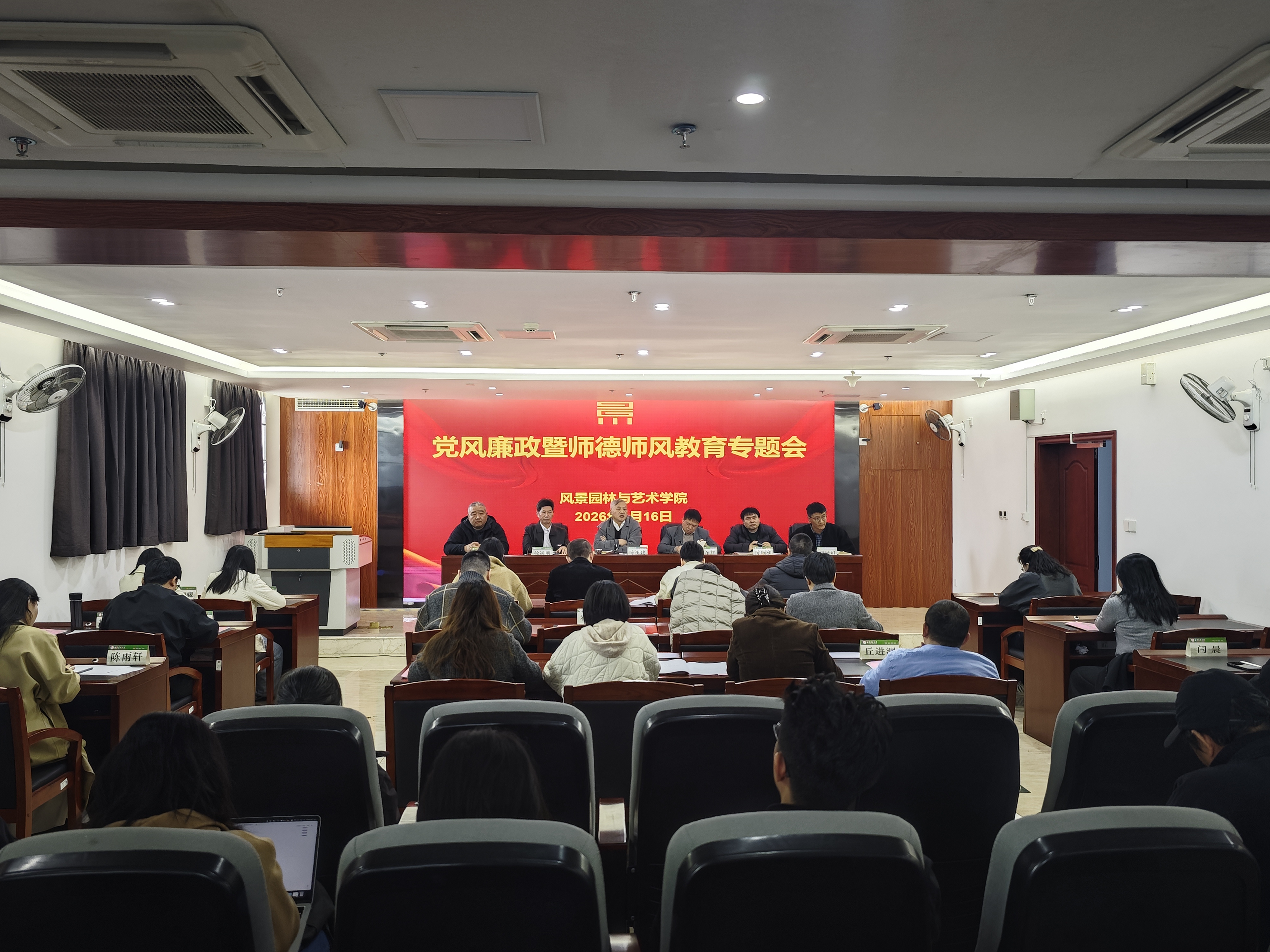 1月16日上午,风景园林与艺术学院在学院1204会议室召开教职工大会暨期末工作会议,全面总结2025年工作成效,系统规划2026年重点任务,进一步统一思想、明确发展方向,为新一年学院事业发展蓄势赋能。会议由学院党委书记陈祖建主持。