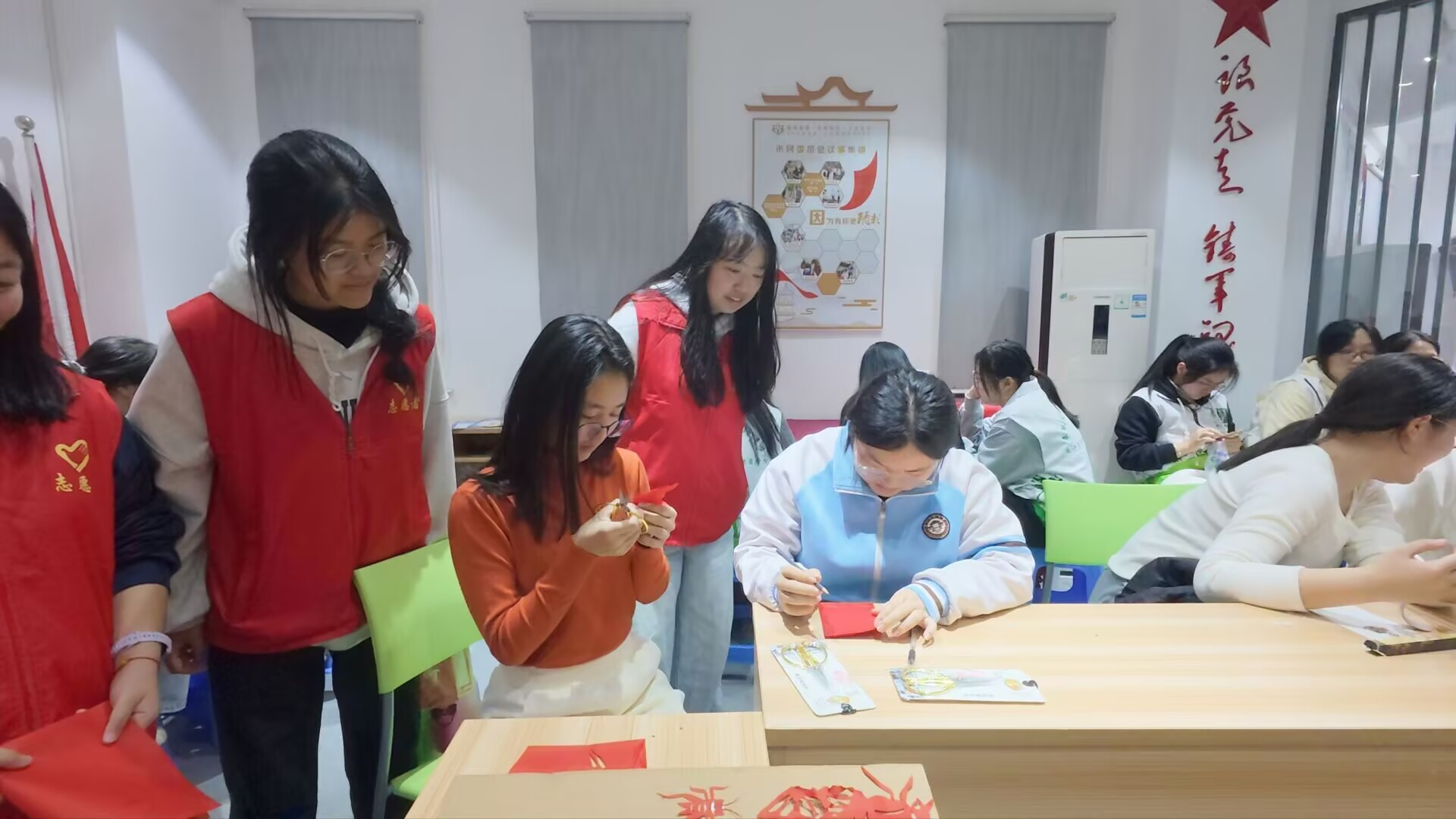 1月17日,实践队奔赴于山社区,与格致中学的同学们开启昆虫科普与剪纸实践相融合的文化体验之旅。队员们打破传统宣讲模式,将昆虫知识与剪纸艺术巧妙结合——通过展示制作的昆虫剪纸作品,以“实物教具”引出各类昆虫的形态特征、生活习性及生态价值。队员们带领同学们亲手创作昆虫剪纸,让科普知识在手工实践中进一步深化。一张张彩纸在指尖翻飞,一个个兼具科学细节与艺术美感的昆虫剪纸作品应运而生。在动手实践的过程中,同学们不仅熟练掌握了基础剪纸技巧,更加深了对昆虫知识的记忆,实现了“在剪艺中学科普,在科普中传非遗”的活动目标。