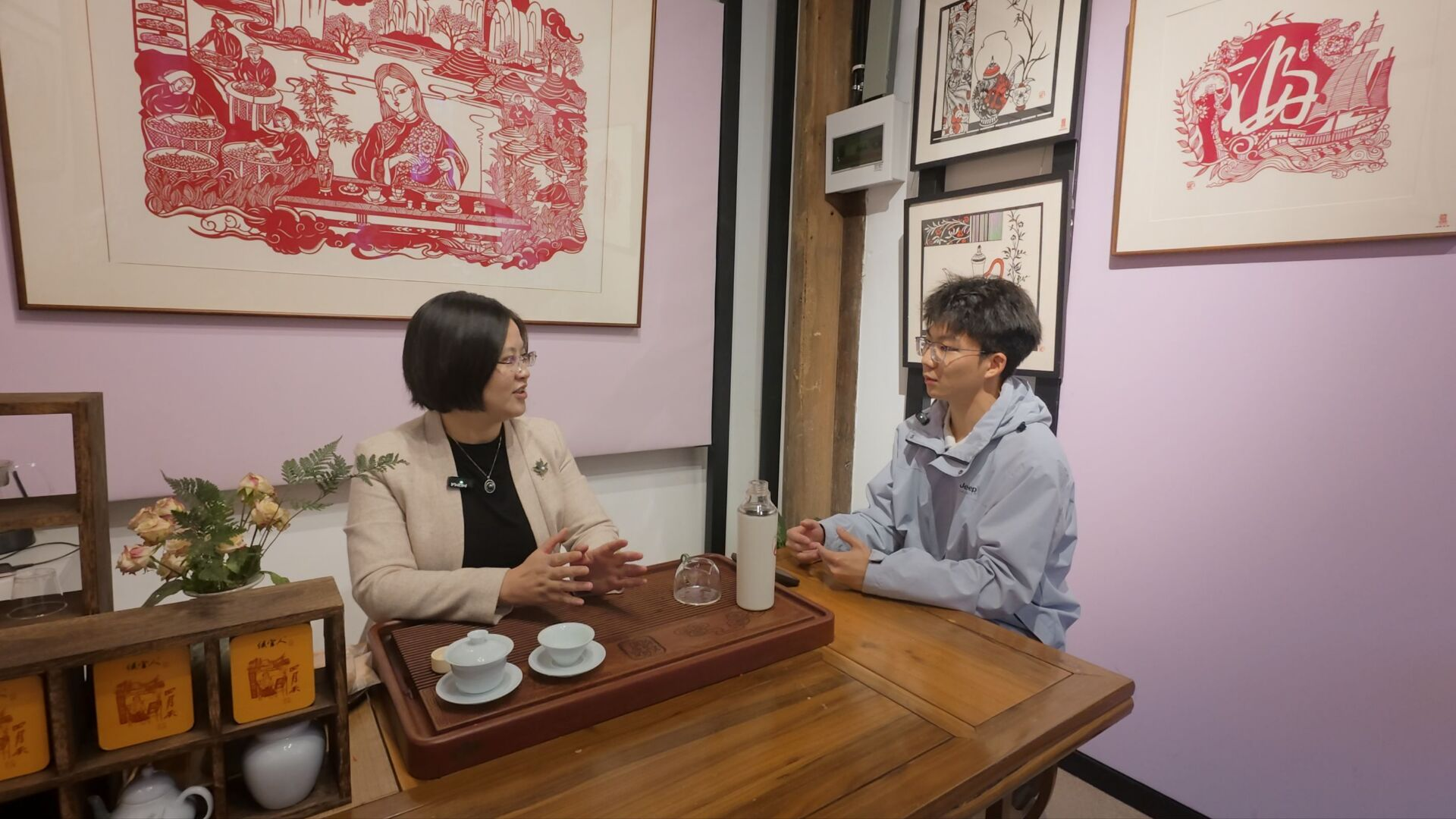 1月19日,实践队前往三坊七巷非遗博览苑,专访非遗浦城剪纸传承人陈煜华老师,探寻非遗创新传承的密码。访谈中,陈煜华围绕“剪纸与昆虫的创新结合”“青少年非遗传承路径”等核心话题分享经验。她指出,昆虫作为自然界中形态多样、色彩丰富的生物,是剪纸艺术的优质创作素材,将二者结合,既能让剪纸作品更具生命力和趣味性,也能借助剪纸让更多人关注、热爱自然。陈煜华寄语同学们:“要在坚守传统技艺精髓的基础上,大胆创新,用年轻人喜欢的方式诠释剪纸艺术,让非遗在代代相传中焕发新生。”