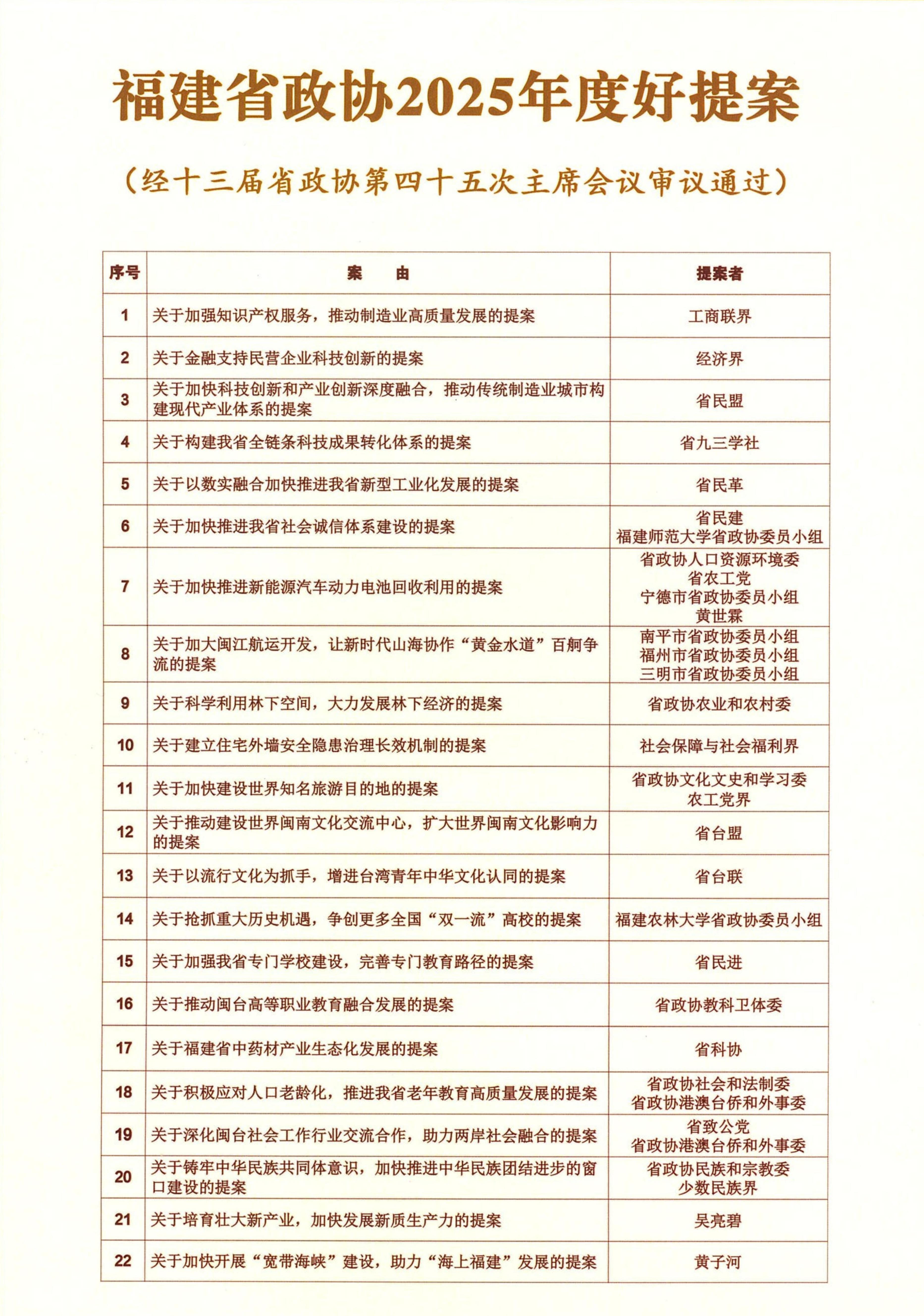 此次成果展示活动从提案工作切入,通过视频短片系统回顾2025年省政协提案工作成效,并发布了50个“年度好提案”。50个年度好提案是从全年委员提出的1149件提案,经审查立案的930件中遴选出来的。这些提案集中展示2025年省政协委员聚焦“国之大者”“省之要事”“民之关切”进行提案履职的风采,充分展现省政协打造“为闽协商、为民服务”特色品牌的生动实践。