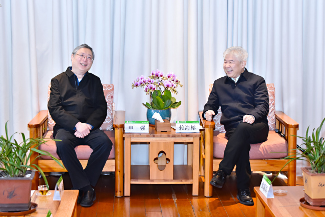 赖海榕对申强院士与刘思一副主席一行到来表示欢迎,并对福建省侨联长期以来在汇聚侨智、服务地方发展方面所作的贡献,特别是对学校人才引进与对外交流工作的大力支持表示感谢。他简要介绍了学校近年来在学科布局、人才队伍建设、科学研究等方面取得的进展,重点介绍了我校农林人工智能研究院的建设情况与核心成果。赖海榕指出,当前学校正深入贯彻党的二十届四中全会和省委十一届九次全会精神,按照习近平总书记给我校全体师生重要回信精神指引的方向,大力推进农林学科与人工智能交叉融合,培养适应现代农业发展需求的高素质农林人才。申强院士在人工智能科学研究和工程实践领域享有盛誉,期待院士为学校推荐更多优秀人才,助力学校农林人工智能学科实现跨越发展,为推动乡村振兴、建设农业强国作出更大贡献。