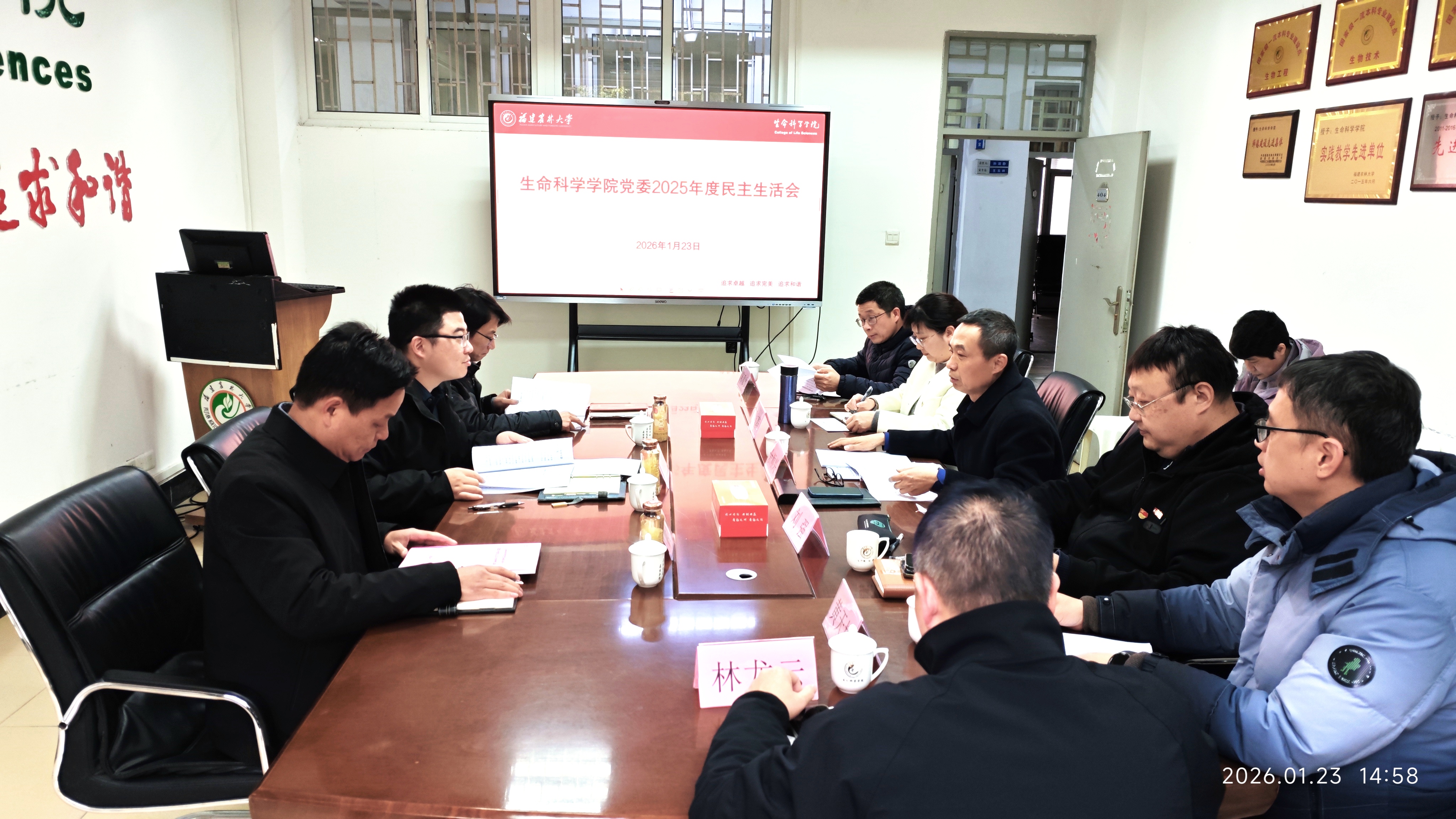 1月23日下午,生命科学学院党委在学院404会议室召开2025年度党员领导干部民主生活会。校党委第二督导组余韵、黄未、阙寿林莅会指导,学院党委班子全体成员参加会议,科级干部列席会议,会议由院党委书记余顺兴主持。