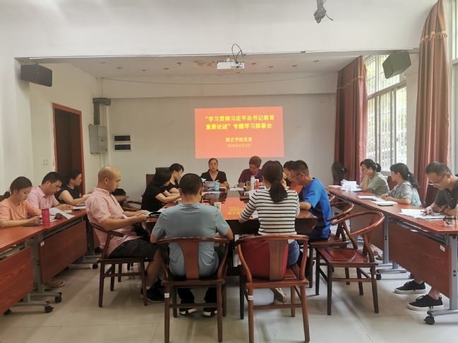 会议强调,一是要突出政治引领,要引导全院干部教师充分认识开展专题学习研讨的重大意义,进一步统一思想;二是学院理论中心组、各教工党支部和系部所要根据校党委统一部署和院党委的具体安排,结合贯彻落实上级和学校各项综合改革措施和重点任务,聚焦重点问题和关键问题,围绕重点内容深入开展学习研讨,确保学习成效;三是要坚持以习近平总书记教育重要论述为指导,严格按照校党委统一部署,强化责任担当,以问题为导向,落细落实各项疫情防控措施,确保疫情防控和全面复学各项工作平稳有序推进。