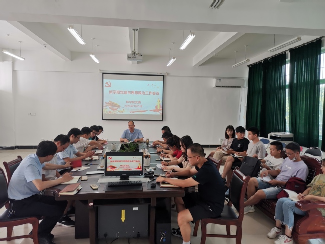 9月3日下午,林学院党委在诚智楼A-206室召开新学期党建与思想政治工作会议。学院党委委员、各党支部书记、支部委员及辅导员等参加会议,会议由院党委书记蓝天水主持。
