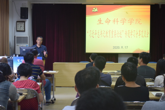 9月17日,生命科学学院召开学习贯彻习近平总书记教育重要论述专题学习分享交流会,全体教职工参加会议。会议由学院党委副书记刘强主持。