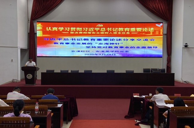 9月24日下午,安溪校区·安溪茶学院党委在校区诚智报告厅召开习近平总书记教育重要论述分享交流会,校区·学院党委副书记李治洲主持会议,全院教职工参会。