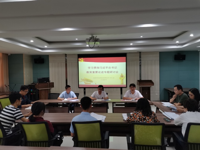 9月24日上午,资源与环境学院党委理论学习中心组召开扩大会议,开展学习贯彻习近平总书记教育重要论述第一次专题学习研讨。会议由学院党委书记童庆满主持,学院领导班子成员、党委委员、教授委员会成员代表、辅导员参加了会议。