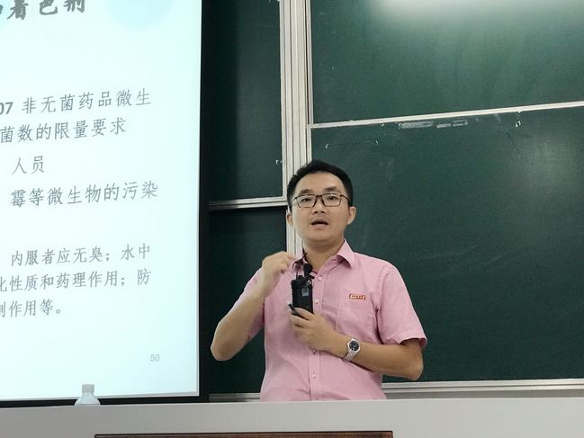 对此,他常会在讲解中引导学生们树立正确的价值观和培养好最基本的道德规范,将思政课堂内容巧妙地投入于线上线下教学活动中。在讲解崩解剂相关知识时,黄彬彬引入幼童因父母失误干服泡腾片而导致死亡的真实案例,从小孩死亡的两个原因,父母疏忽与用药安全性方面知识的缺乏,提醒学生去思考怎样帮助身边需要这方面知识的家庭,思考未来的制药人是否需要承担更多的社会责任。黄彬彬希望能通过课堂上的案例潜移默化地影响学生,让他们树立正确的三观,以达到立德树人的目标。在2017级制药工程专业郭彬彬同学看来,黄彬彬认真负责且富有教学经验。“老师在讲解知识点时会采用实物演示与案例分析的方式,许多与现实紧密联系的事件引发了我对于职业责任的思考。”郭彬彬回忆道。