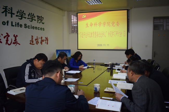 11月11日上午,生命科学学院党委理论学习中心组开展学习贯彻习近平总书记教育重要论述第三场专题学习研讨。会议由学院党委书记陈建辉主持,学院领导班子成员、党委委员、辅导员参加会议。
