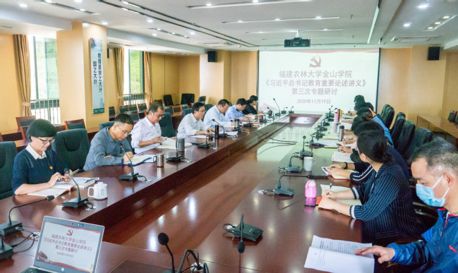 11月19日下午,金山学院党委理论学习中心组在学院第二会议室开展学习贯彻习近平总书记教育重要论述第三次专题研讨。与会人员围绕《习近平总书记教育重要论述讲义》“推动党和国家各项事业发展的重要先手棋——坚持优先发展教育事业”“我国教育最鲜亮底色——坚持社会主义办学方向”“教育发展要走自己的路——坚持扎根中国大地办教育”三讲主题进行研讨交流。院领导班子全体成员、下属党总支书记、机关各部处负责人参加会议。会议由院党委常务副书记孙思惟主持。