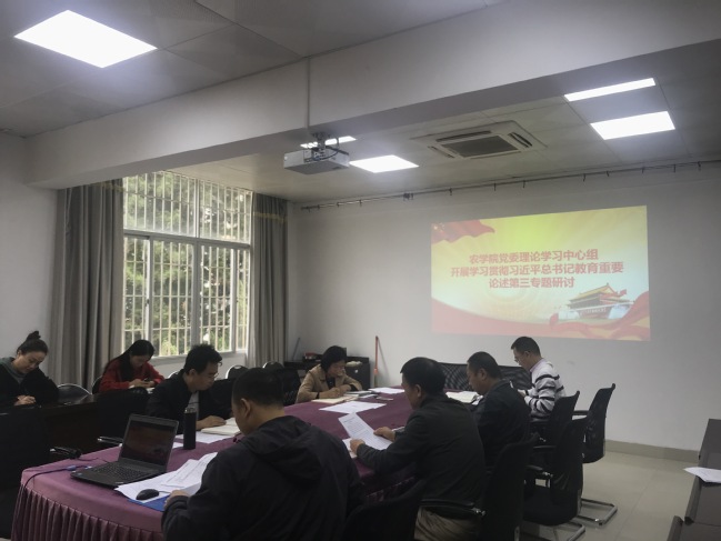 11月24日上午,农学院党委理论学习中心组开展学习贯彻习近平总书记教育重要论述第三次专题研讨,会议围绕“推动党和国家各项事业发展的先手棋——坚持优先发展教育事业”“我国教育最鲜亮的底色——坚持社会主义办学方向”“教育发展要走自己的路——坚持扎根中国大地办教育”三个主题开展学习研讨。学院党委理论学习中心组成员参加学习,会议由学院党委书记洪诚主持。