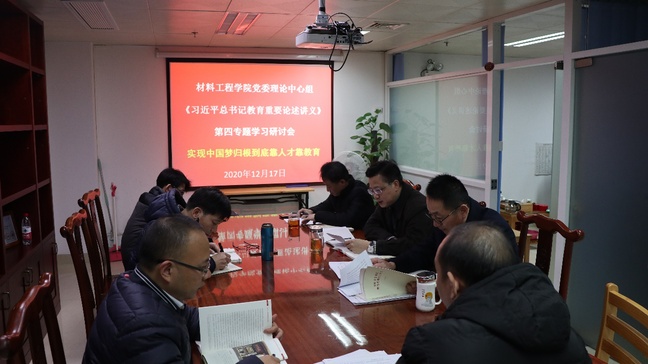 12月17日下午,材料工程学院党委理论学习中心组召开学习贯彻习近平总书记教育重要论述第四专题学习研讨会。会议由学院党委书记林豪森主持,学院党委理论学习中心组成员参加会议。