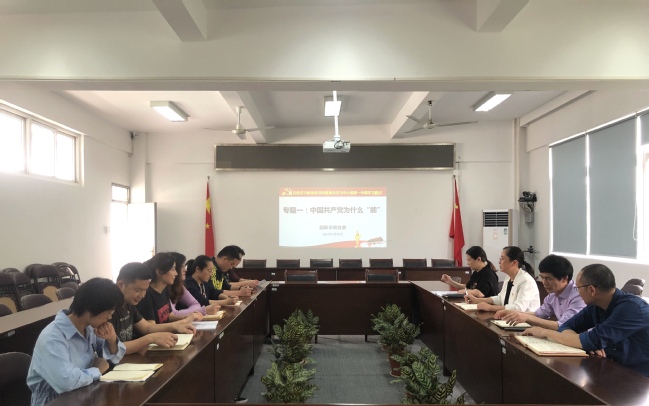 3月30日下午,国际学院党委理论学习中心组开展党史学习教育读书班第一专题学习,在前期自学的基础上,围绕中国共产党为什么“能”这一主题进行交流研讨。院党委书记张华英主持会议,理论学习中心组成员、各党支部书记、支部委员和政工干部出席会议。